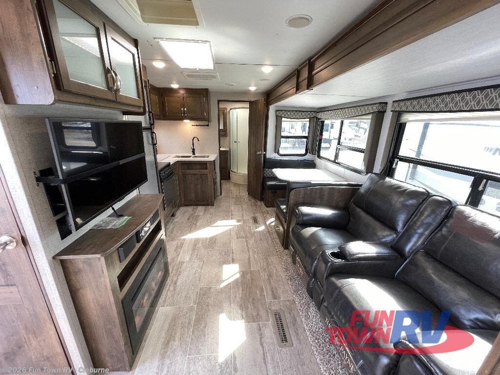 With the Dutchmen Aerolite travel trailer, you will always find exceptional interior comforts, like the 6' 10" ceiling height that delivers a residential feel, the stainless steel appliances, and the LED lighting throughout. The family will enjoy listening to the superb quality coming from the Jensen soundbar, and you will be thoroughly impressed by the iN-Command control system that allows you to monitor and change various electrical functions throughout the Aerolite with the ease of your smart phone. And the Industry-Best 3-year limited structural warranty that comes with each Aerolite allows you to enjoy your travel trailer for years to come!