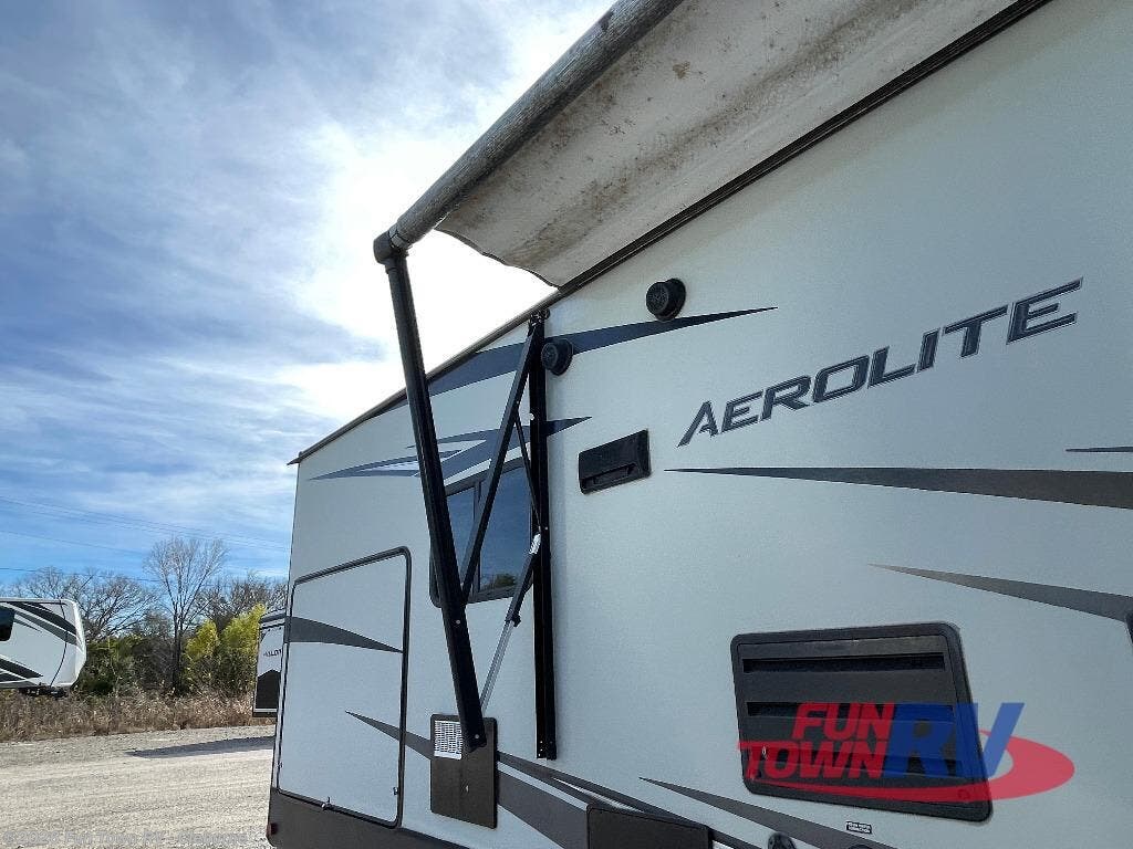 You will love every trip you take with the family in this Aerolite travel trailer! From the rear full bathroom with a radius shower to the front private bedroom with a queen-size bed, this unit gives you privacy where you want it most. You will also enjoy having the option to prepare dinner inside with the full kitchen or outside in the fresh air with the outdoor kitchen, and when the leaves begin to fall and the air turns crisp, you will enjoy cuddling up on the tri-fold sofa in front of the fireplace as you watch your favorite movie on the LED HDTV before bed.