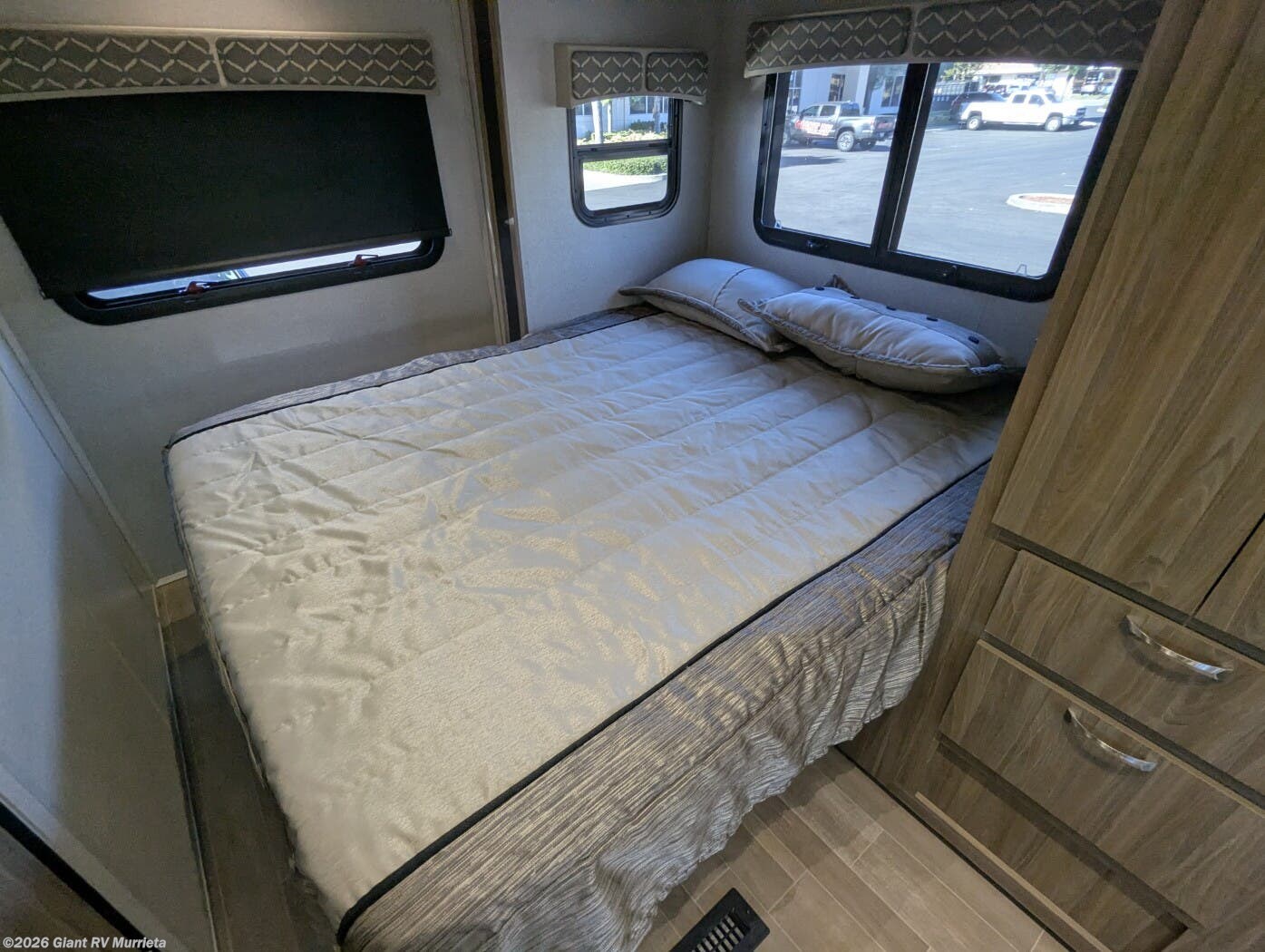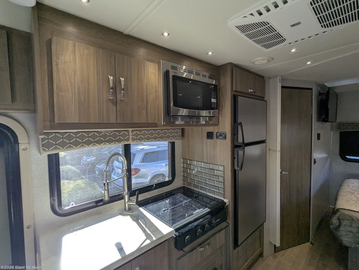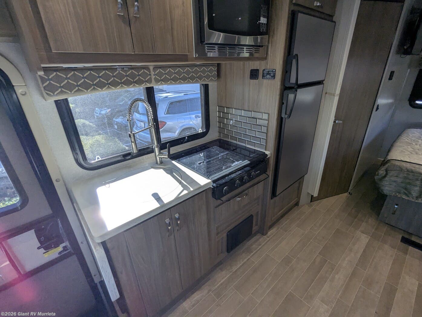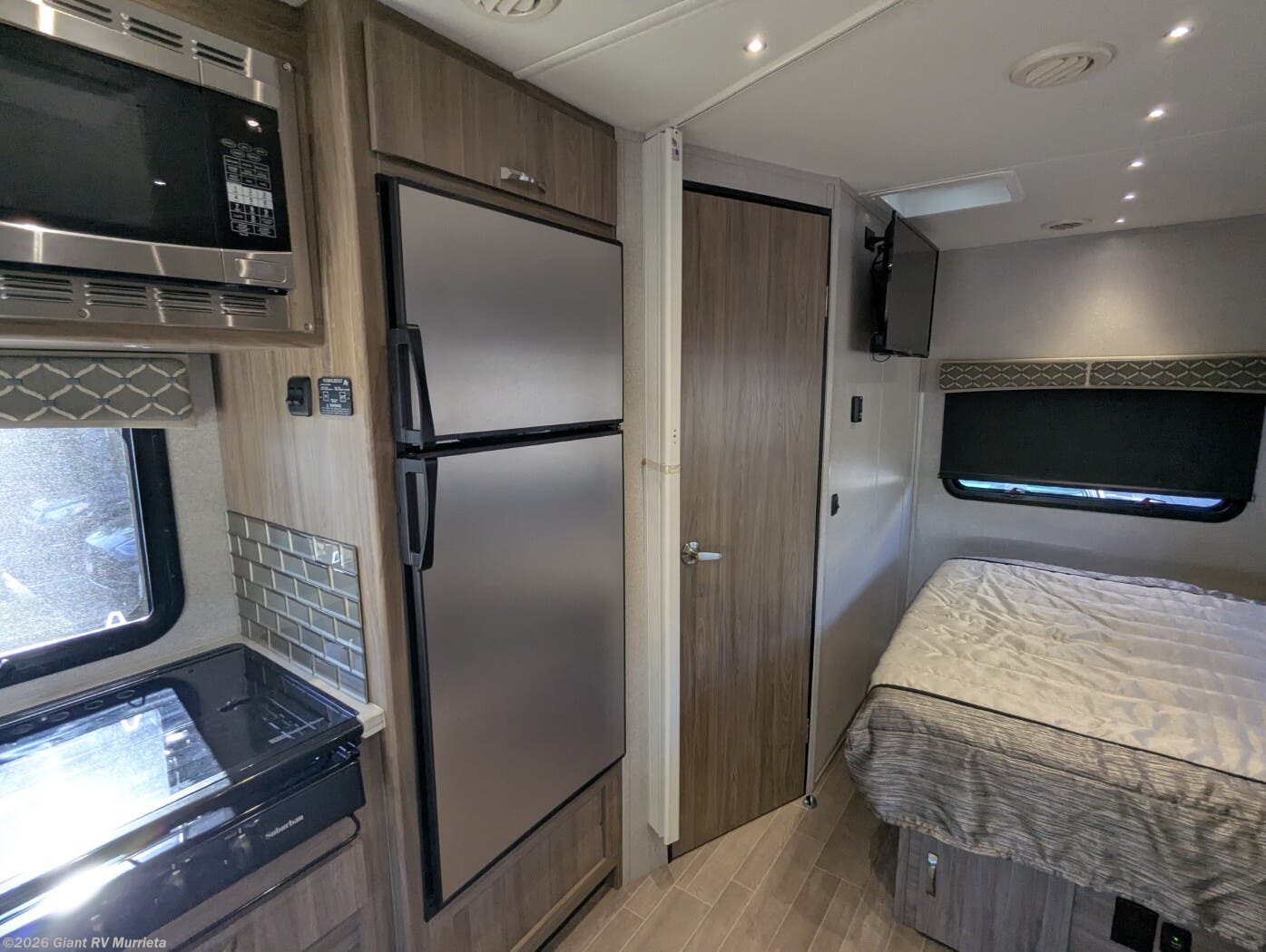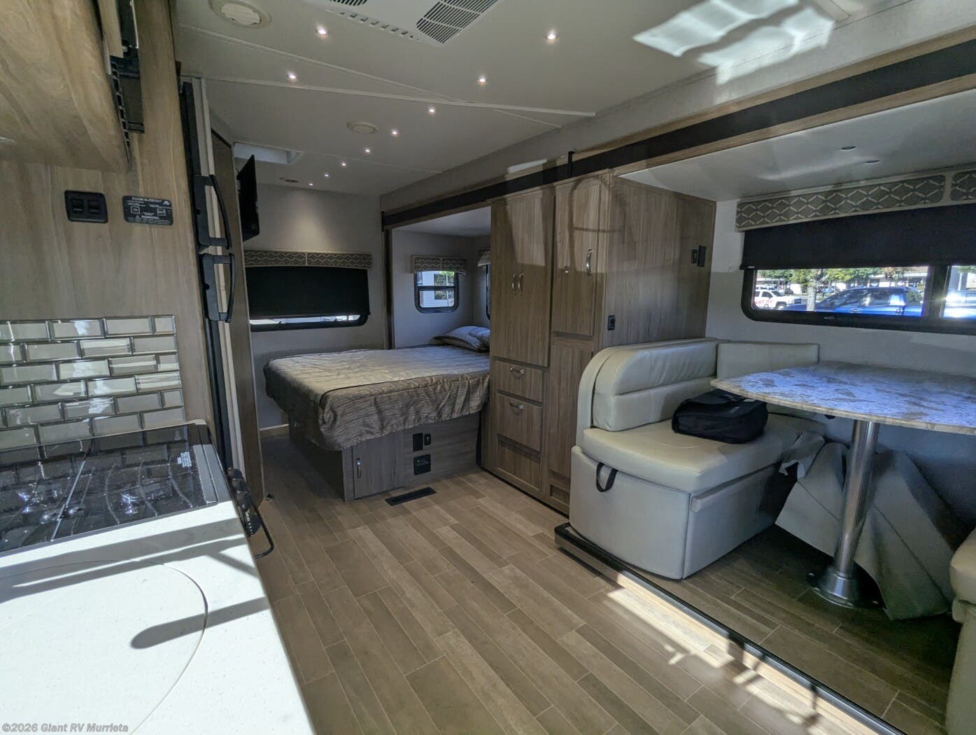- Expansive Full-Wall Slide that opens the living area to include a roomy dinette, galley, and sleeping space, creating a surprisingly open interior for a 24' coach.