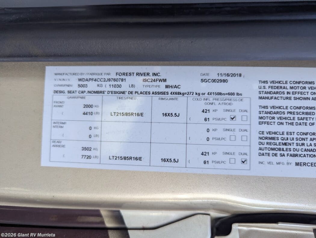Request More Info on this 2019 Dynamax Corp ISATA 24FWM Offered for sale by Giant RV