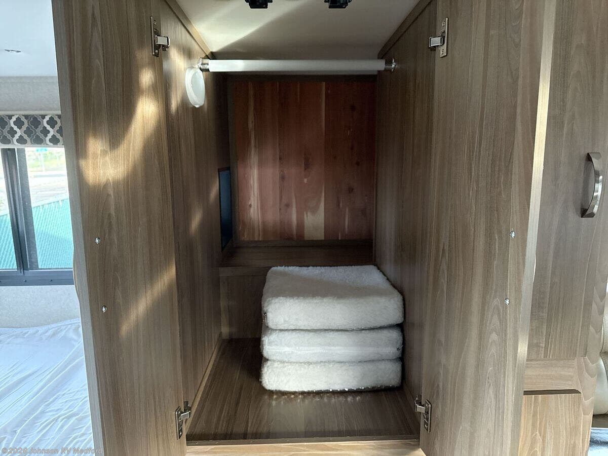 Features Include: 220-Amp Alternator, 12v AGM Battery, Dual Rear Wheels, Valve Extenders, 4.75-Gal DEF Tank, Power Door Locks, Cabover Cabinets, Power Windows, Armless Awning, LEDs, Motion Retract, Patio Light, Lighted Entry Handle, Lighted Power Steps, Dinette Booth, Pantry, Galley Mini Blinds, Counter Extension, Stainless Steel Sink, Cooktop Glass Cover, Convection Microwave, USB Charging Ports, WiFi Extender, 4x4 HDMI Matrix, 32-inch LED TV, Outdoor Speakers, Nightstands, USB Charging Ports, LED Reading Lights, Cedar-Lined Wardrobe, Privacy Partition, Linen Storage, Shower Skylight, Mechanicals, 20.3-Gal LP Tank, Auto Transfer Switch, 30-Amp Service Cord, Charge Wizard System, GFCI Receptacle, 20k Furnace, Black Tank Flush, Aluminum Framed, LED Marker Lights, Electric Slideouts