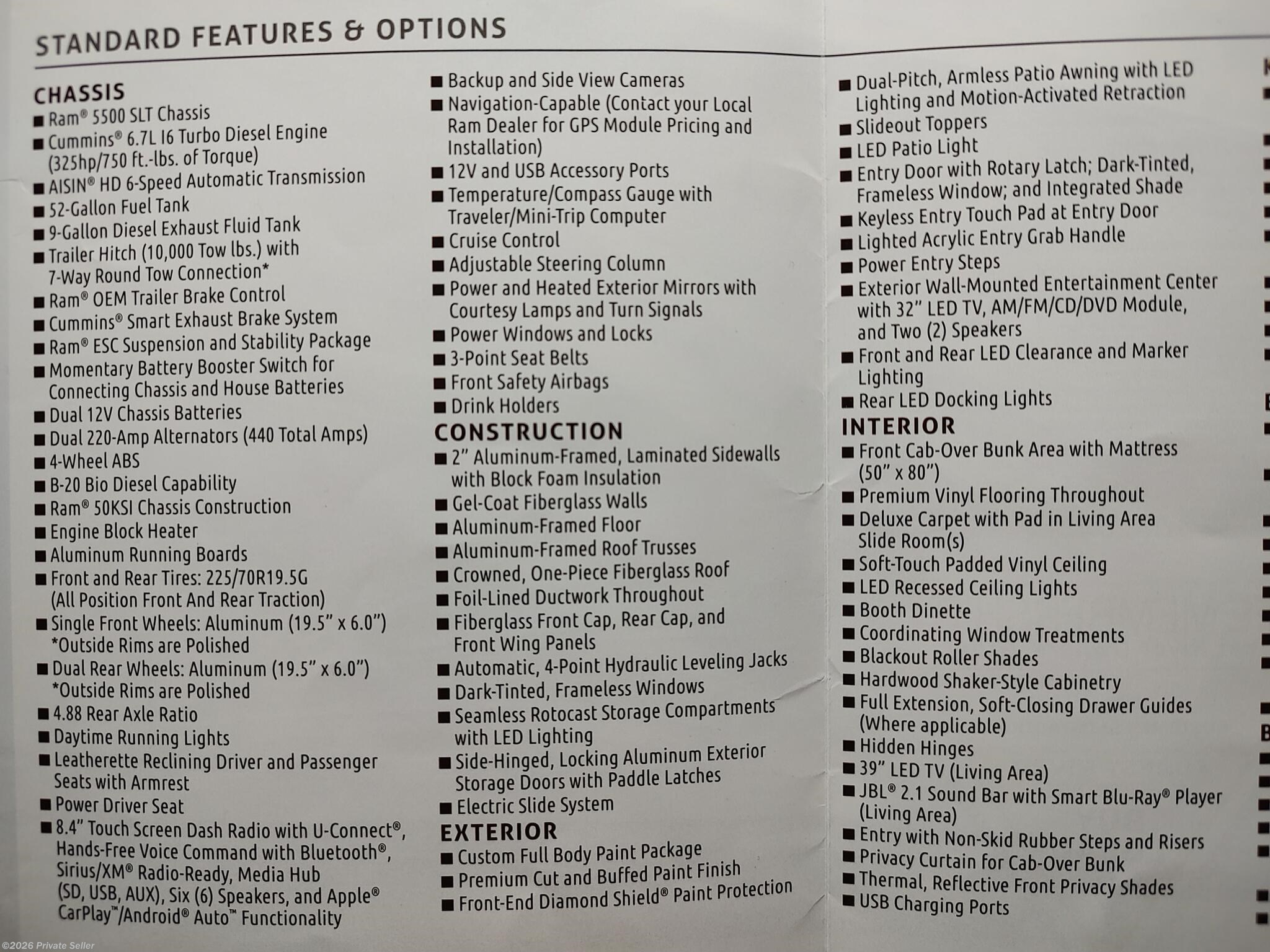 Equipped with 3 TV's, Outside Bluetooth radio, DVD player and Winegard Wi-Fi.