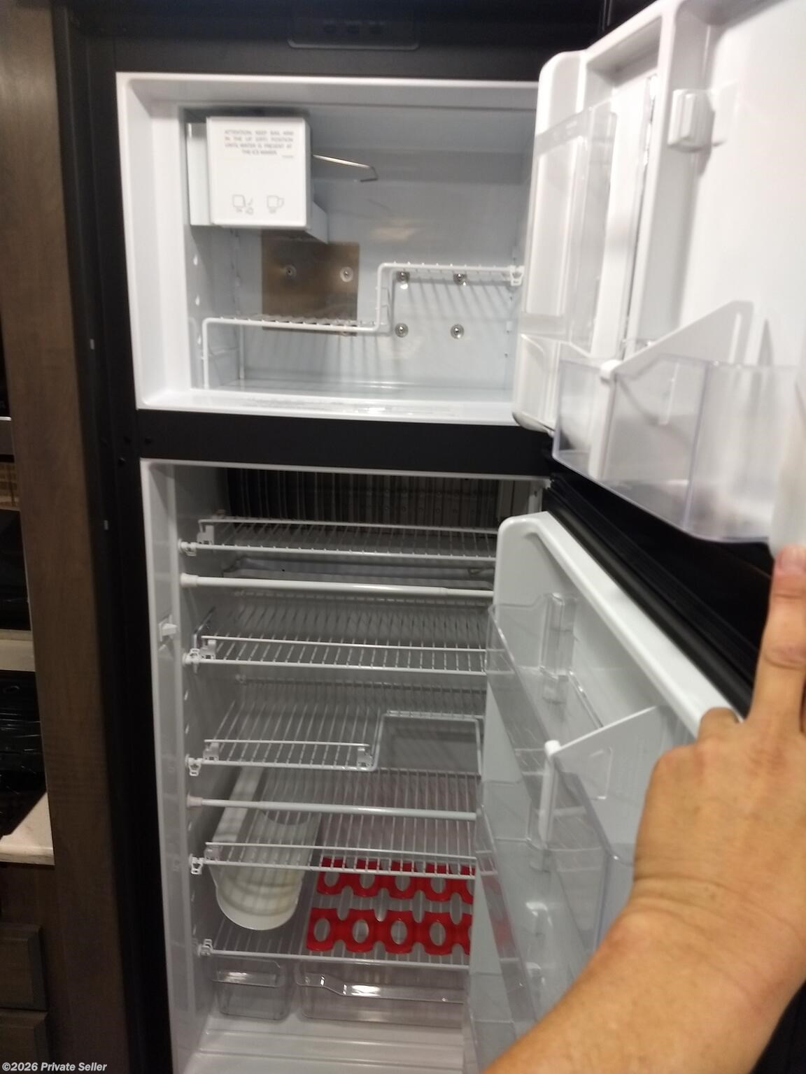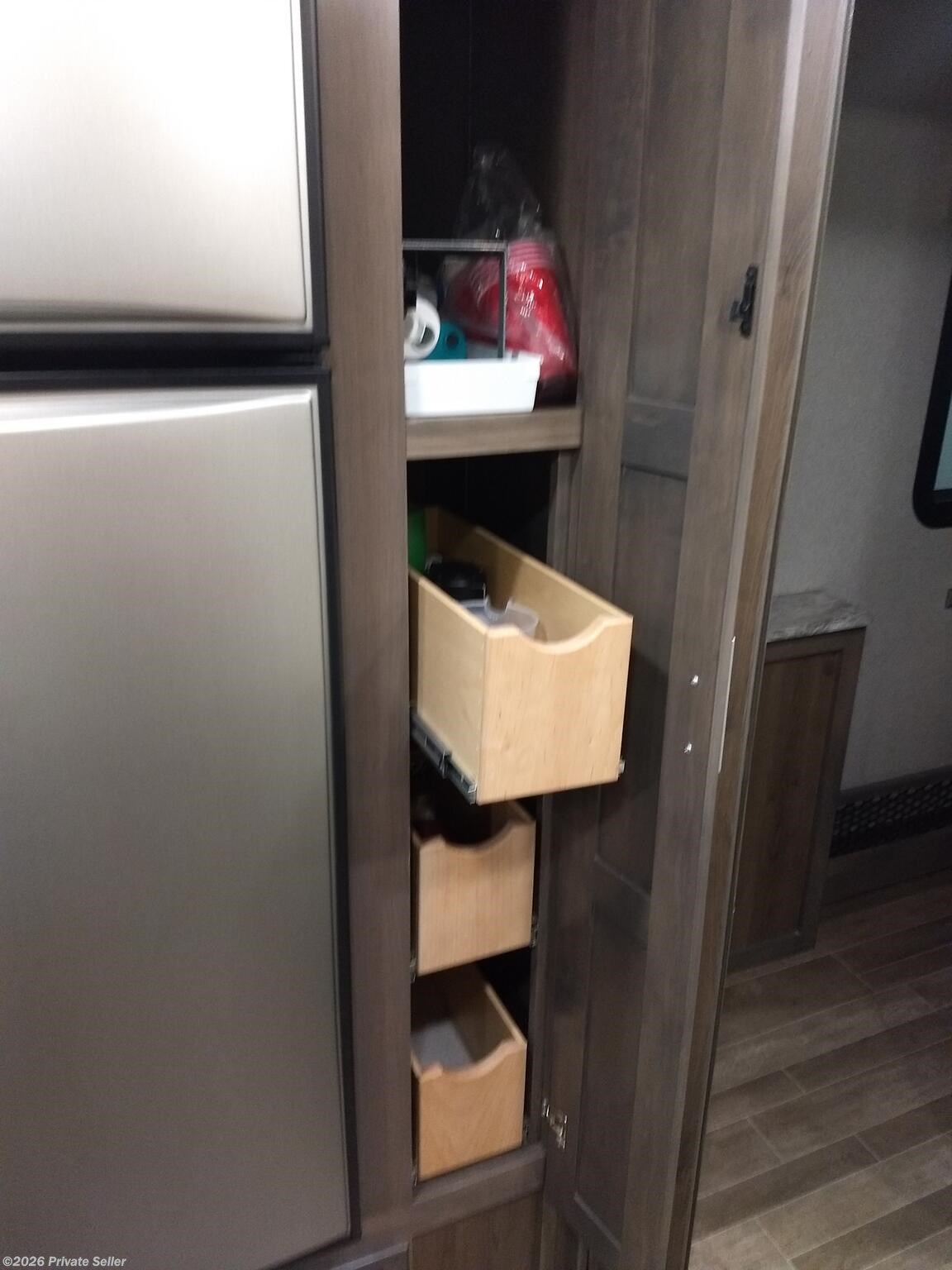 Color is Granite with Driftwood and Espresso interior. Plenty of storage space with slide out pantry, self-closing drawers and cedar wardrobe closet.