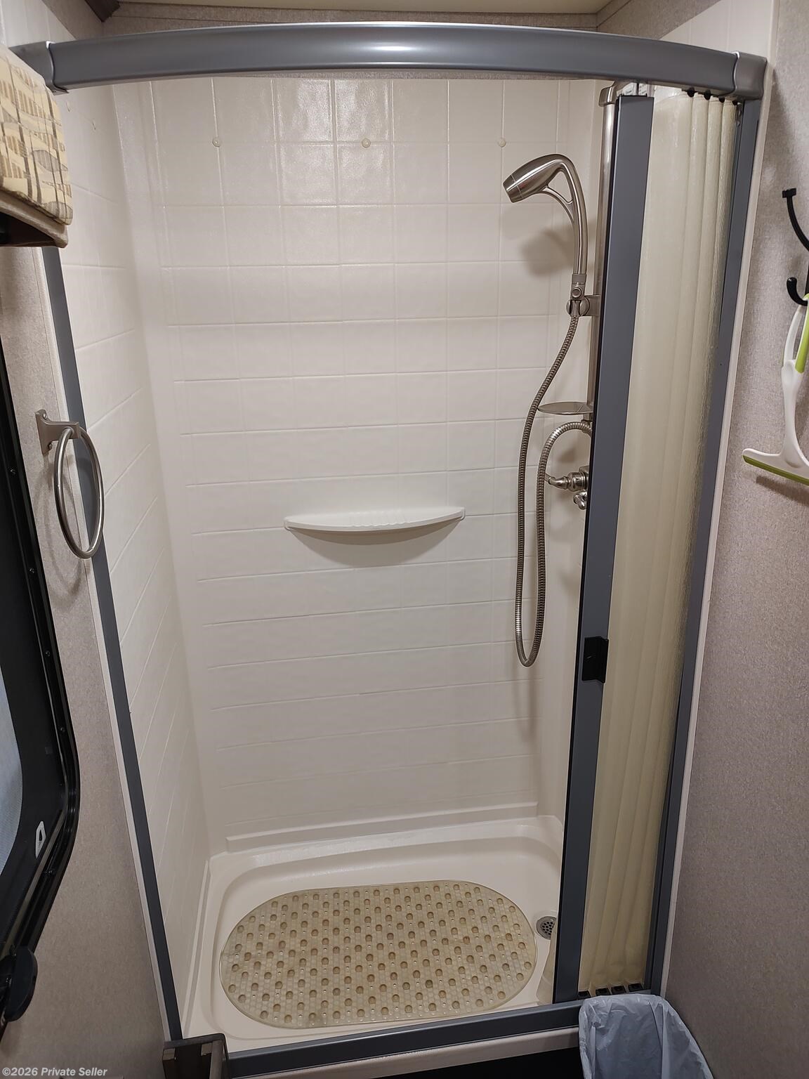 The roomy bathroom has a large 24”x36” shower. Reliable Truma endless hot water.