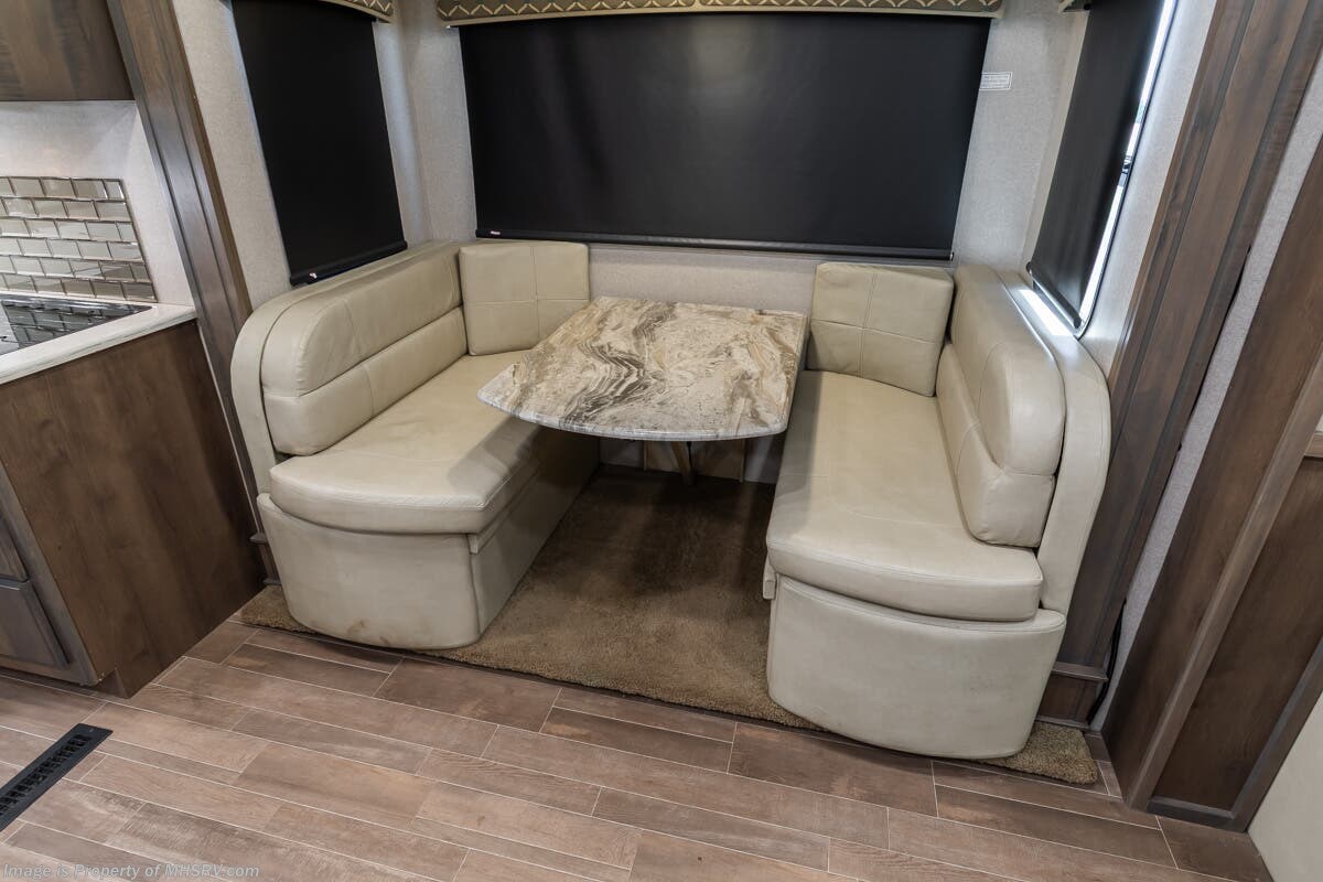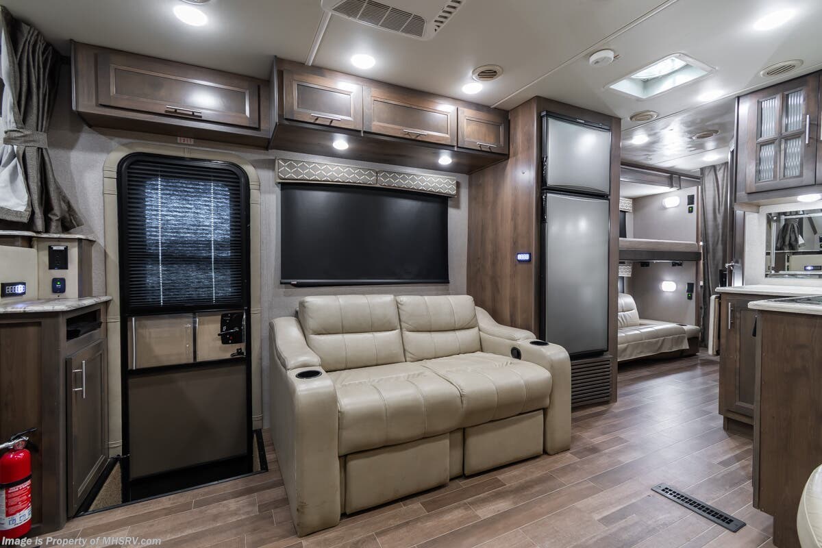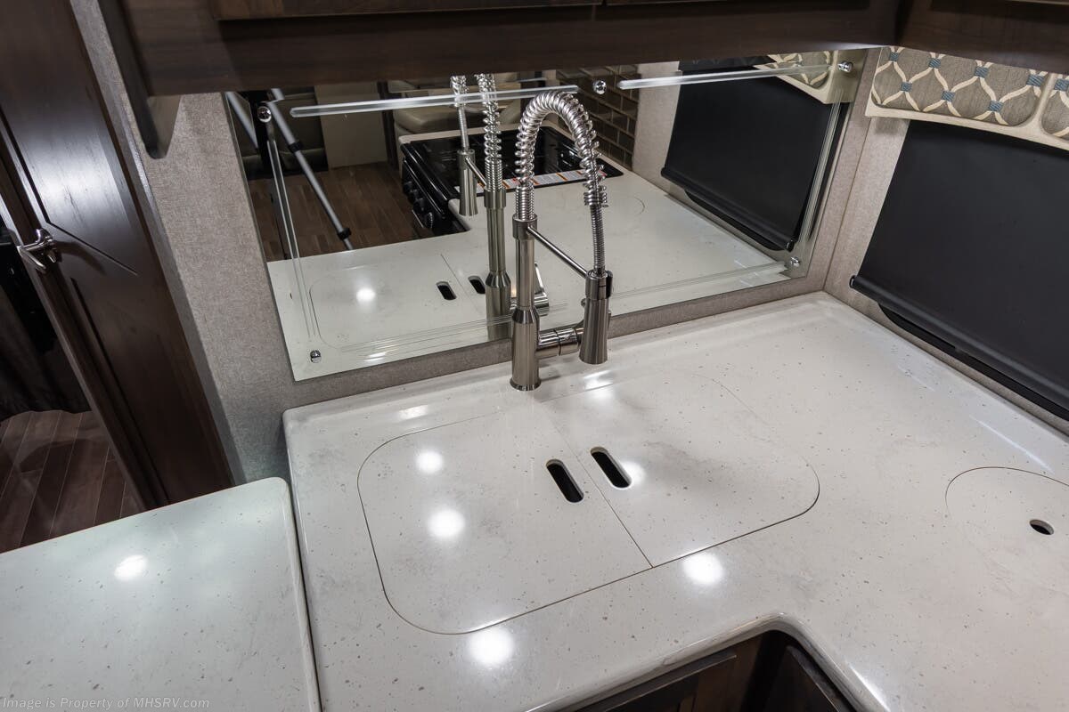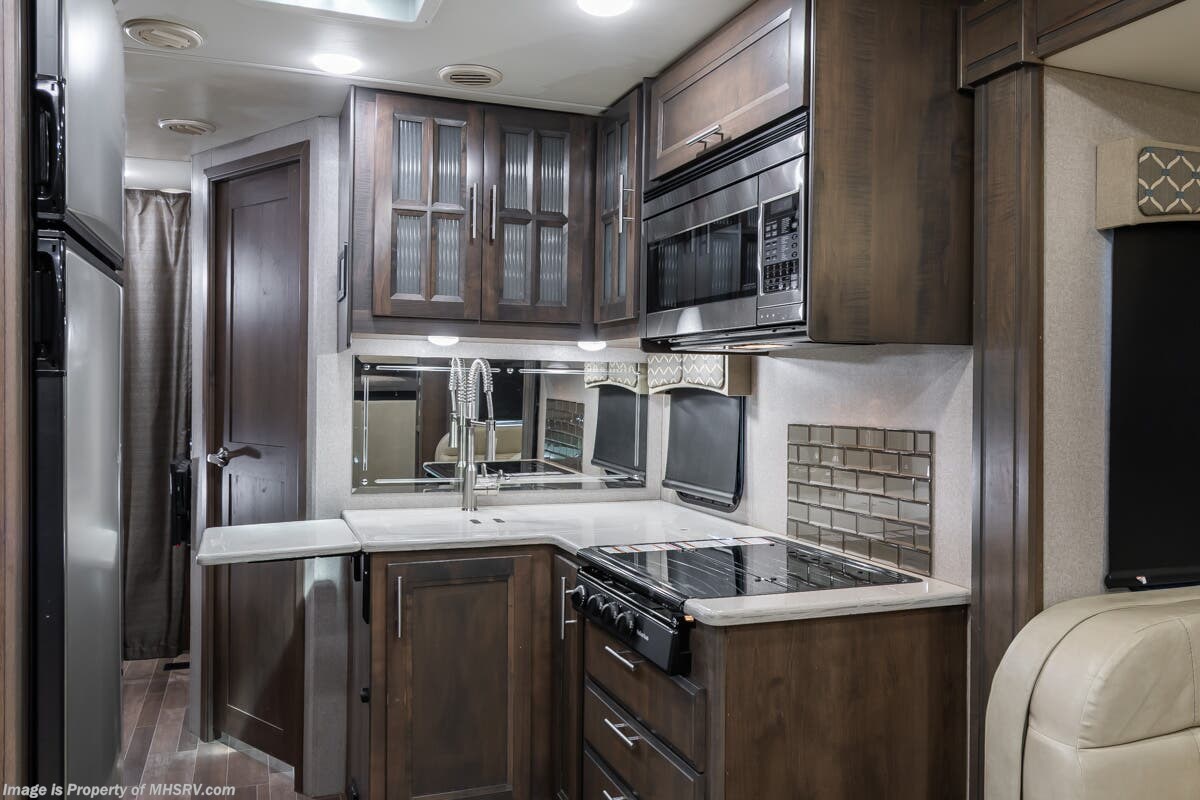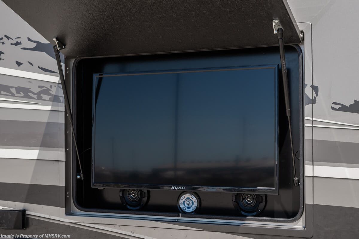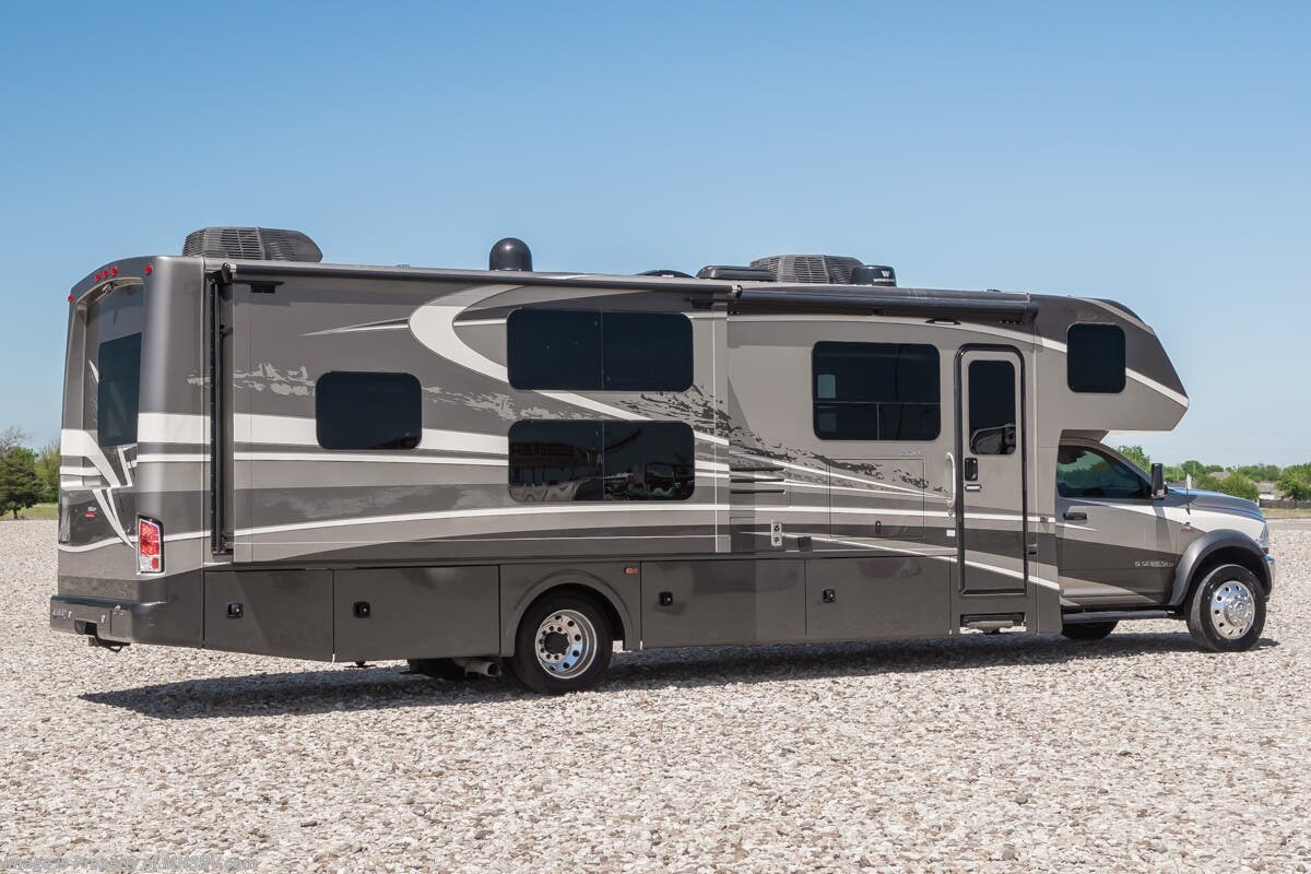 More About This RV This RV features aluminum wheels, equalizer systems hydraulic leveling, full body paint, 3 camera system, diesel generator, Cummins 6.7L diesel engine, Dodge Ram Chassis, dual A/C's, smart wheel, secondary exhaust brake, GPS, keyless entry, cruise control, water manifold, patio awning, door awning, pass through storage, LED running lights, docking lights, black tank flush, exterior shower, exterior TV, clear paint mask, fiberglass roof, solar, inverter, lithium batteries, multi-plex control panel, residential refrigerator with ice maker, 3 burner gas range, solid surface counter, theater seats, overhead loft and much more