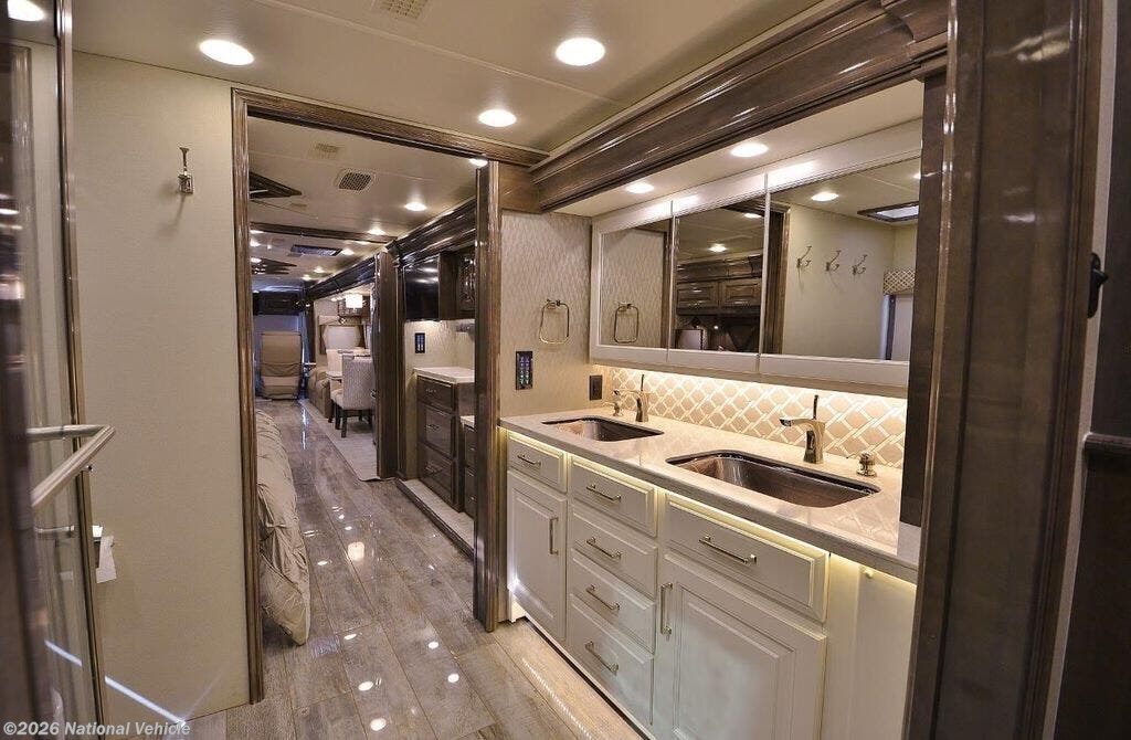 Luxurious 44-foot 11-inch bath-and-a-half diesel pusher, featuring four slides, a 450HP Cummins engine on a Spartan K2 chassis, and, often, theater seating. It is highly regarded for its quiet ride, X-Bridge framing for superior structural rigidity, and premium amenities like heated porcelain tile floors, a King Sleep Number bed, and a 15-inch digital dash.