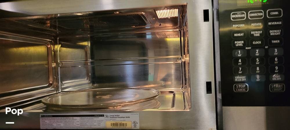 The kitchen has everything you need: a full-sized residential refrigerator-freezer, a convection microwave, a 3-burner stovetop and oven, a stainless steel double kitchen sink, and plenty of counter space. There's also a nice backsplash, so cleaning up after any meal is easy.