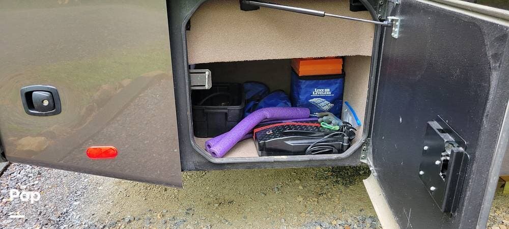 The roof is a one-piece seamless fiberglass that offers unmatched durability. For storage, you have lockable pass-through storage with easy-to-use side-hinged, insulated slam-latch doors.