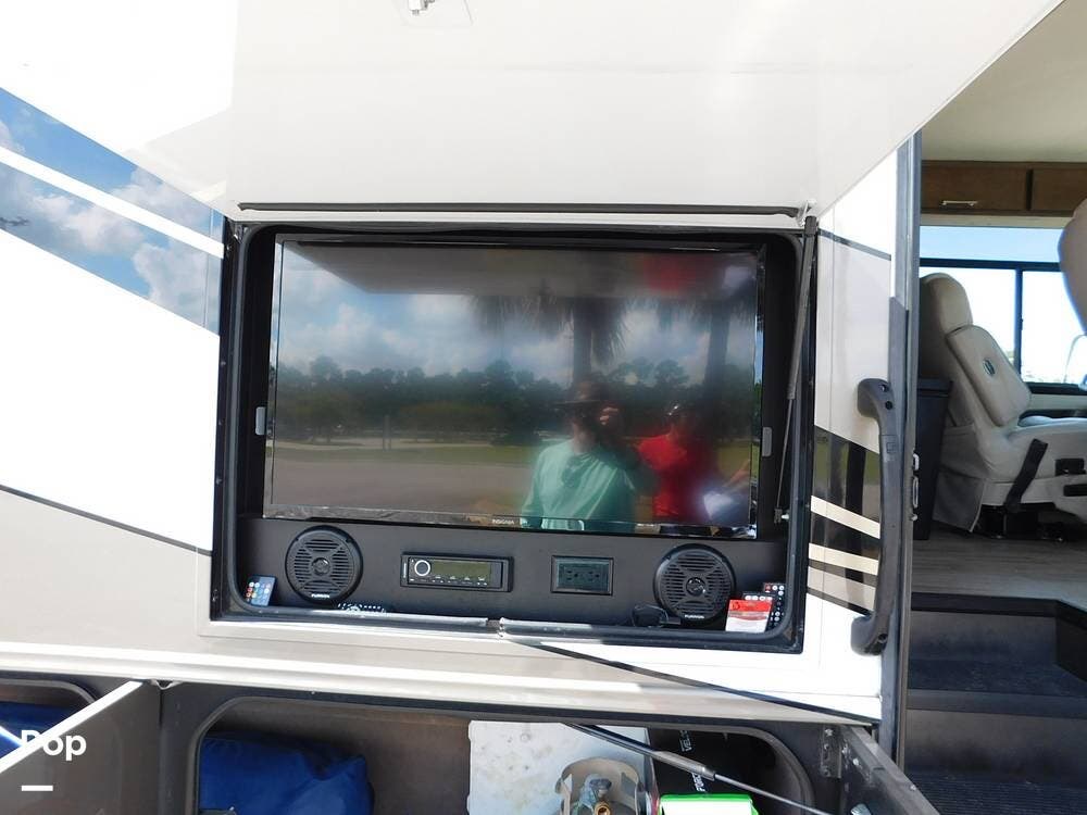 This is a very nice 2019 Entegra Emblem 36U - with sleeping for eight people. It has 2 slides with toppers, a large shade awning, and exterior TV and stereo speakers.