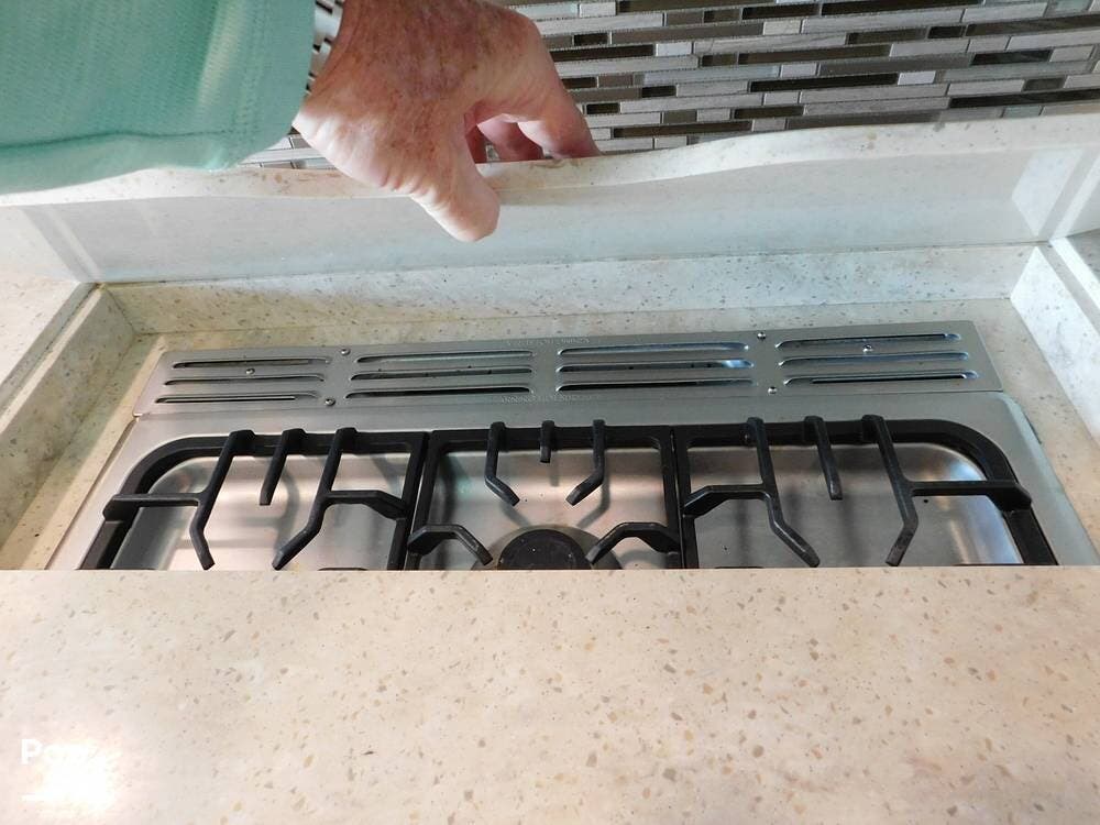 The well-equipped kitchen has a 3-burner cooktop, a convection microwave, a large sink, and an oven.