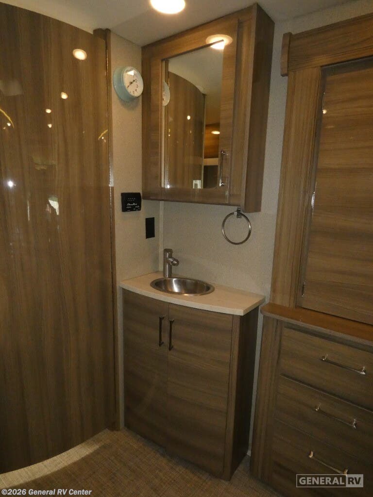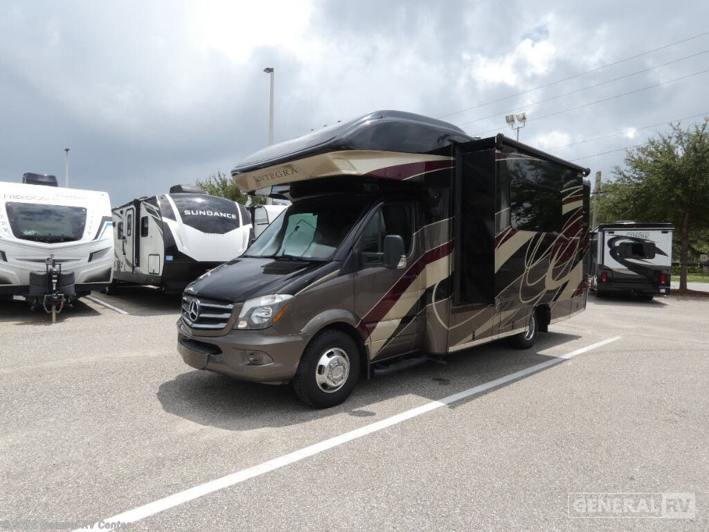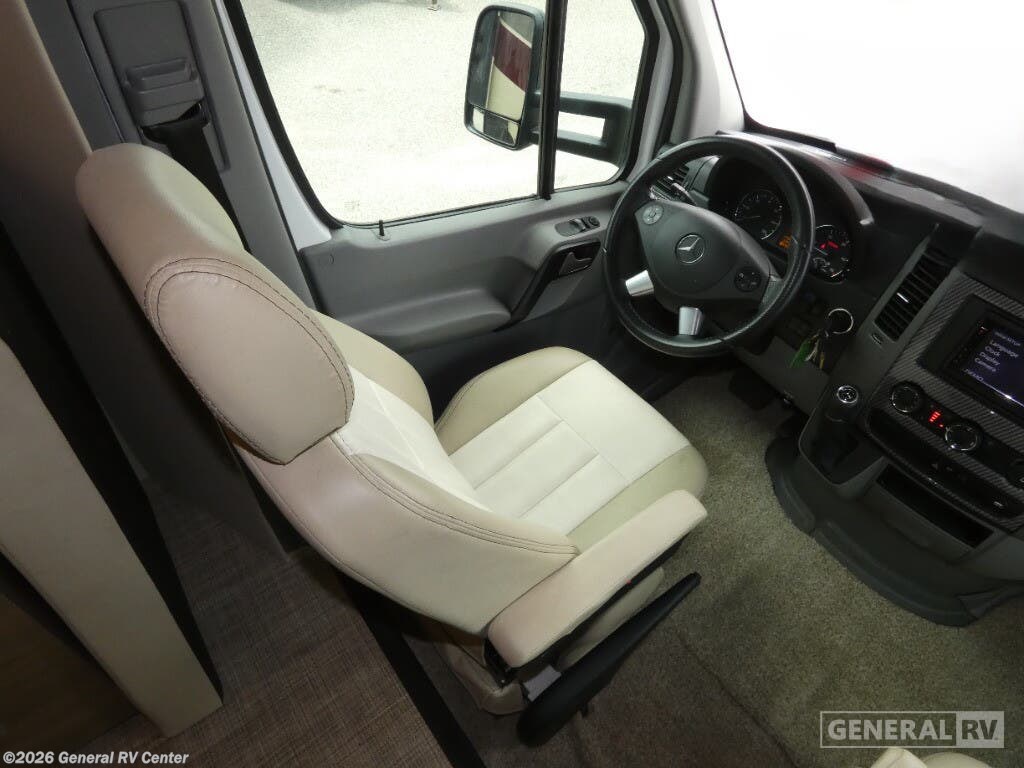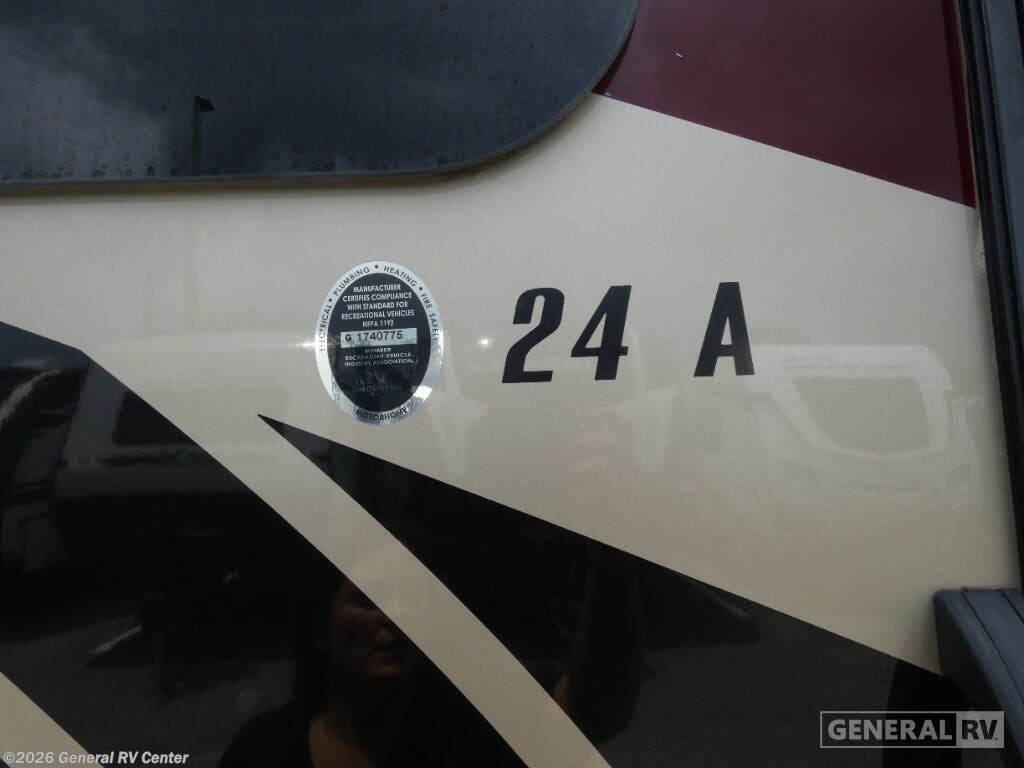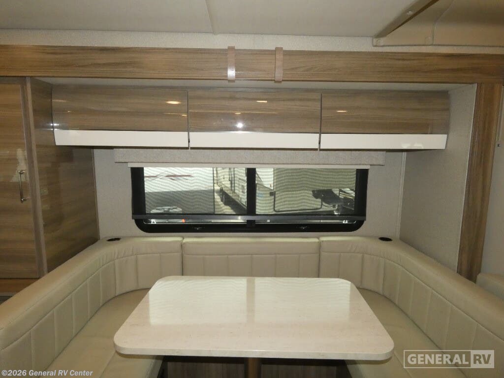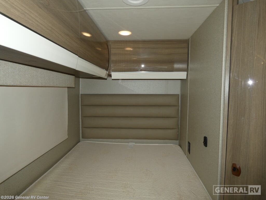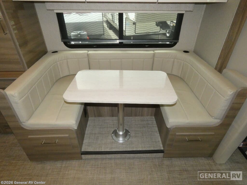Experience the ultimate in compact luxury with the 2019 Entegra Coach Qwest 24A. This elegant RV is built on the reliable Mercedes-Benz Sprinter 3500 chassis, powered by a robust V6 engine, offering you 188 horsepower and 325 lb-ft of torque. Its sleek design, stretching over 25 feet, is perfect for those seeking adventure without compromising on comfort. The powered 14-foot awning creates a delightful outdoor space, inviting you to unwind and enjoy the scenic beauty around you. Inside, the Qwest 24A is brilliantly designed to maximize space and convenience. The front living area features a cozy U-dinette, perfect for meals or game nights, and easily converts into an additional sleeping space. The cab-over bunk provides extra sleeping quarters for family or friends. At the rear, the 50 x 80 bed offers a restful retreat, while the well-appointed kitchen with a 6 cu. ft. refrigerator and two-burner cooktop ensures you can whip up your favorite meals on the road. The rear bath with a 24 x 36 shower adds a touch of home-like comfort. With a fresh water capacity of 39 gallons and both gray and black water capacities at 31 gallons, the Qwest 24A is ready for extended adventures. Whether you're navigating cityscapes or exploring the great outdoors, this diesel-powered beauty is your perfect companion. For more details or to see it in person, visit your nearest General RV dealership.