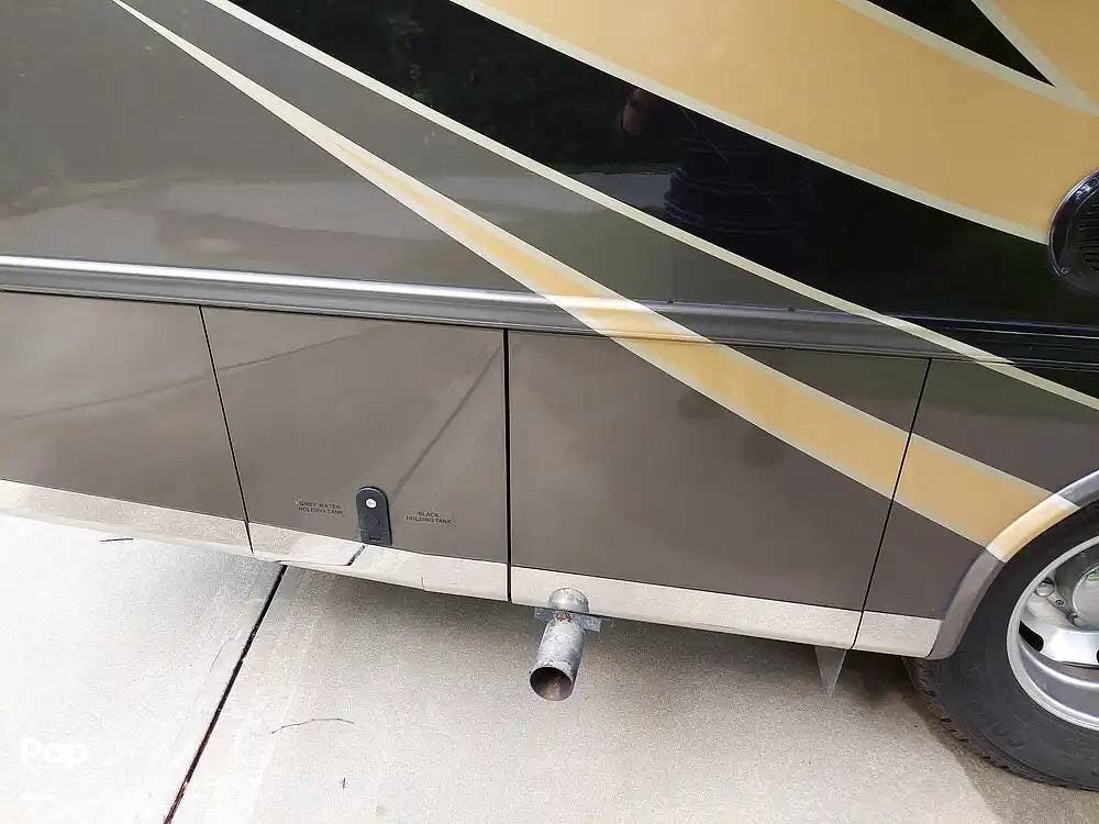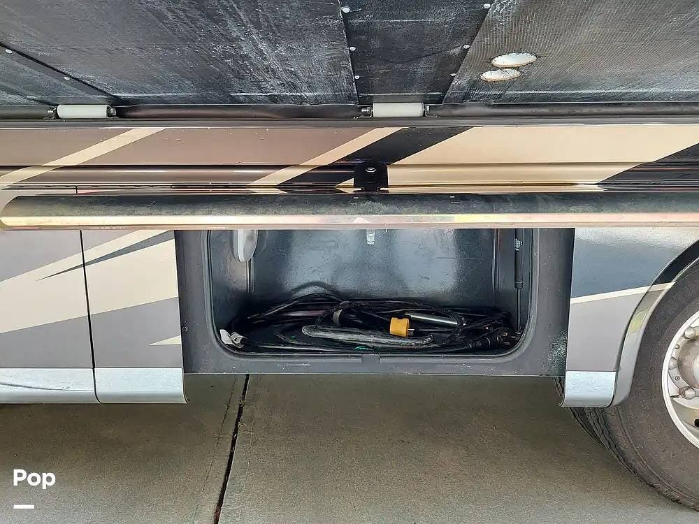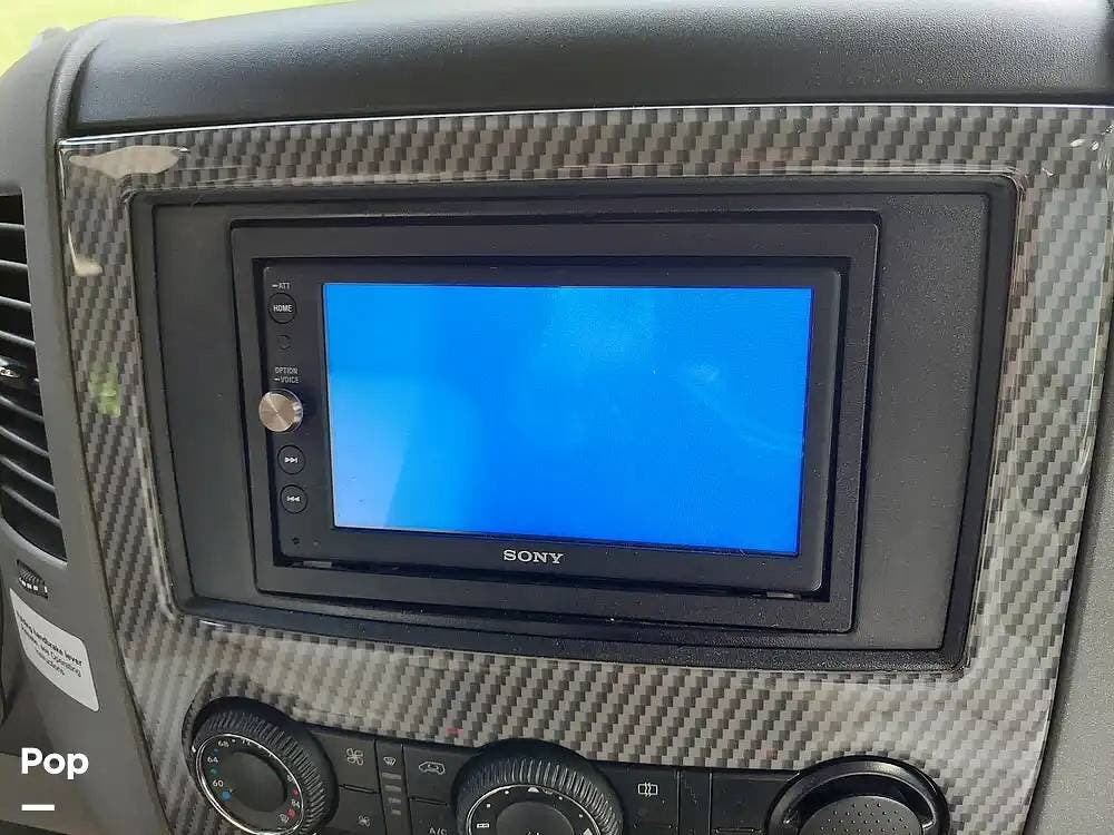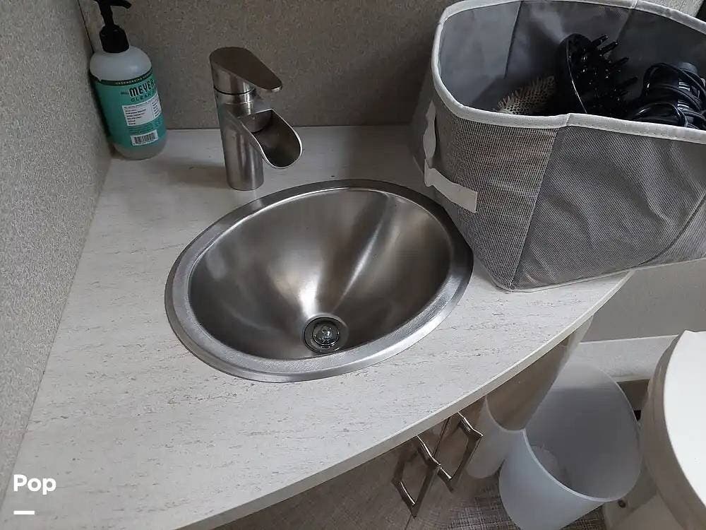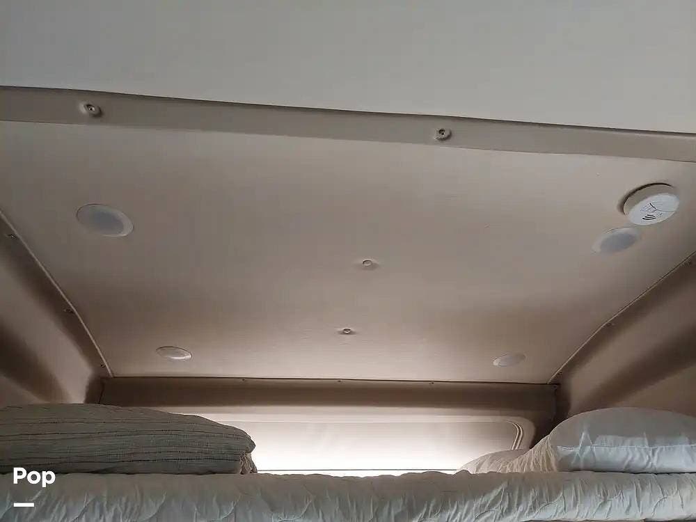 Inside, she has a cabover double bed with a ladder and a Sony TV with surround sound located over the side entrance door.