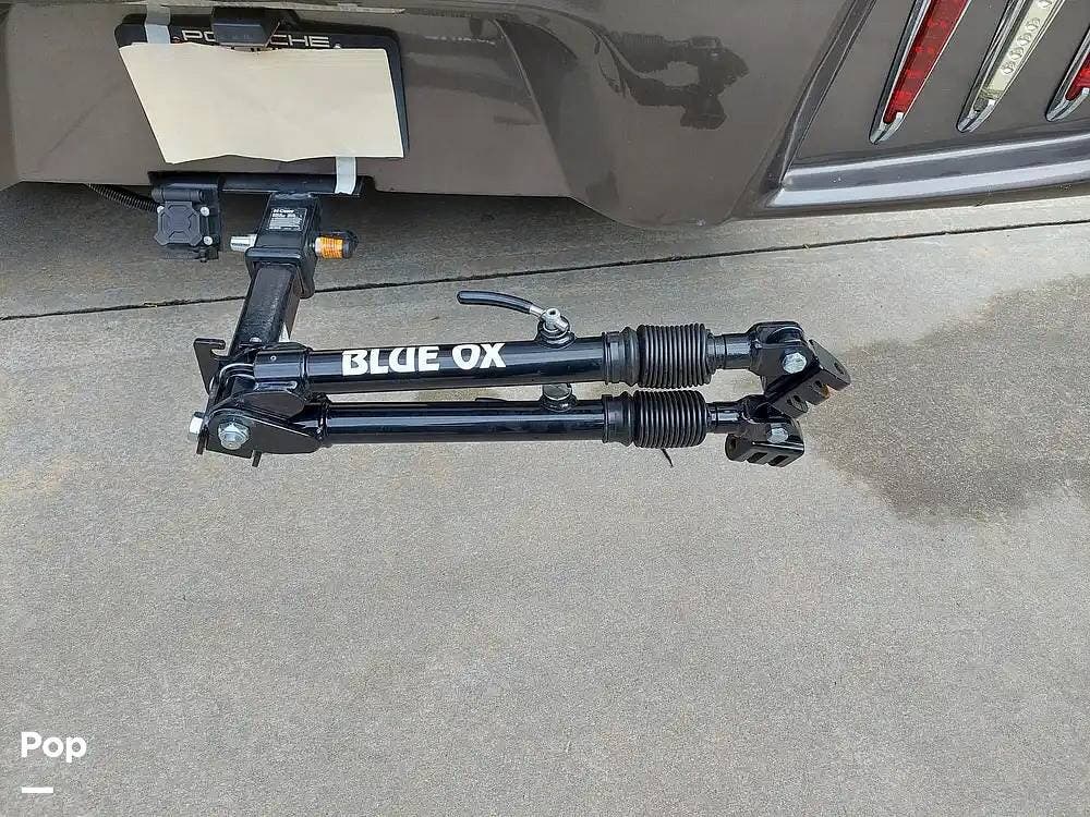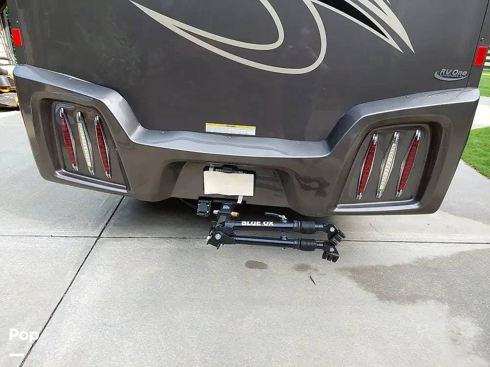 This 2019 Qwest 24L, manufactured by Entegra, has a power slide with an awning topper, a power awning, and lots of outside storage. She has five seatbelts and comes with a Blue Ox hitch.