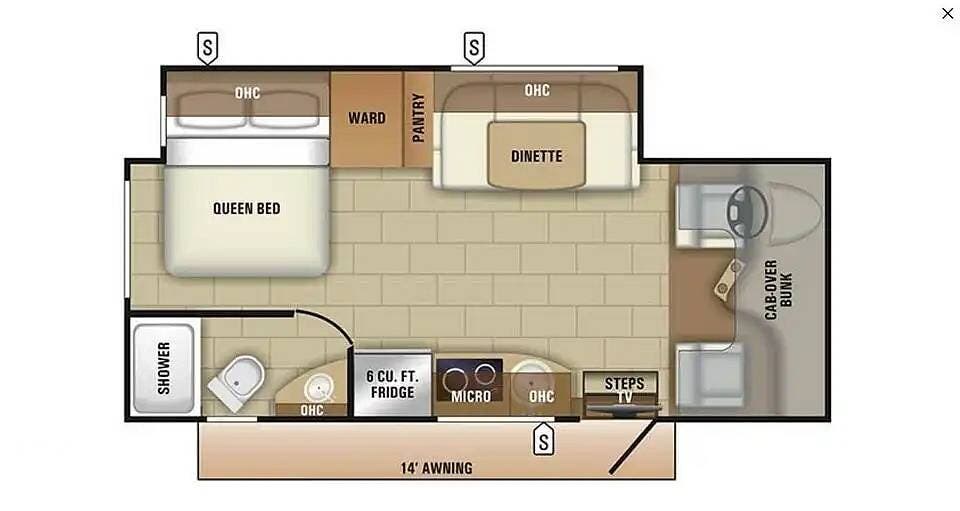 This roomy Class C has plenty of storage both inside and outside and is ready to take you on your next camping adventure!