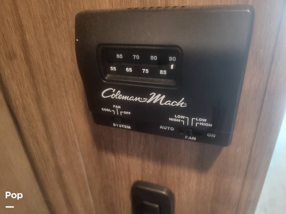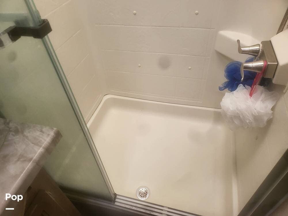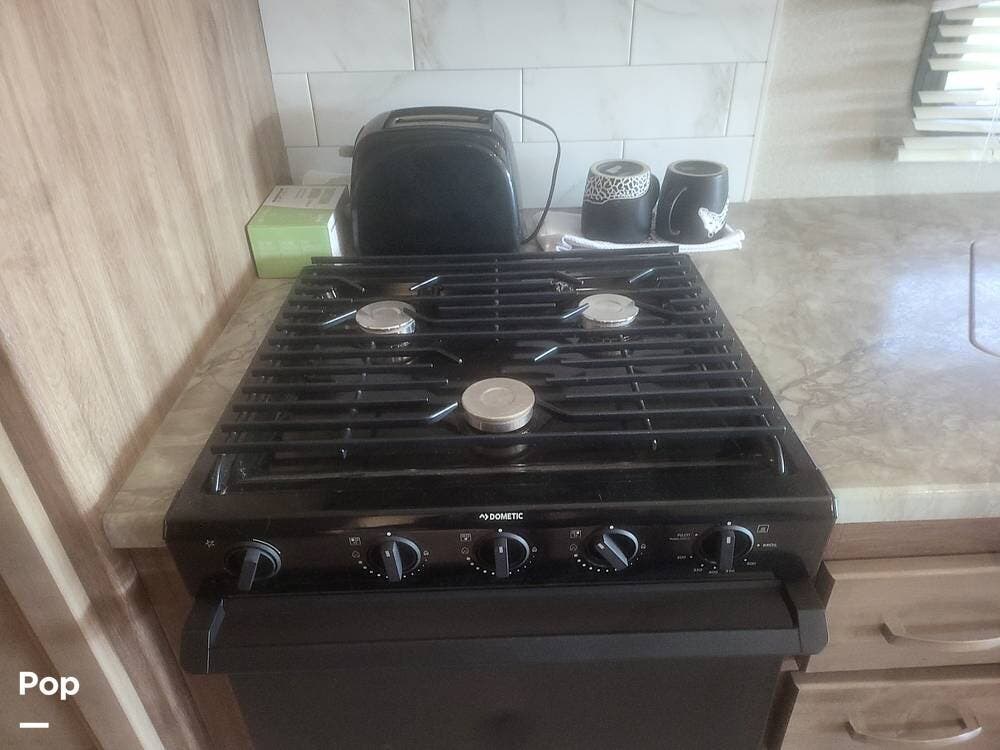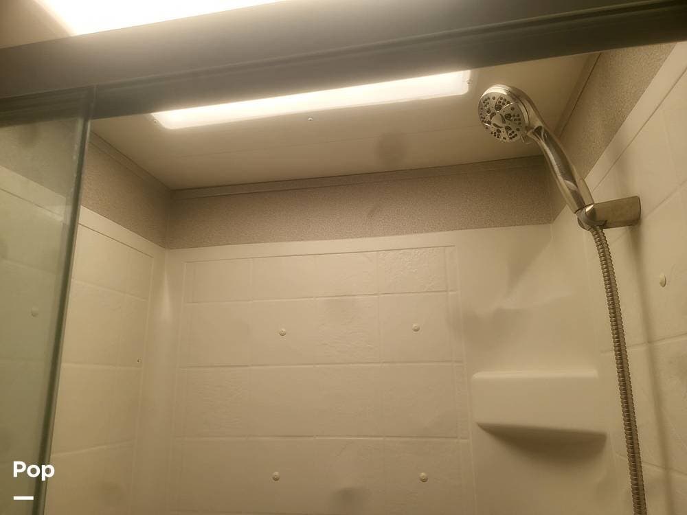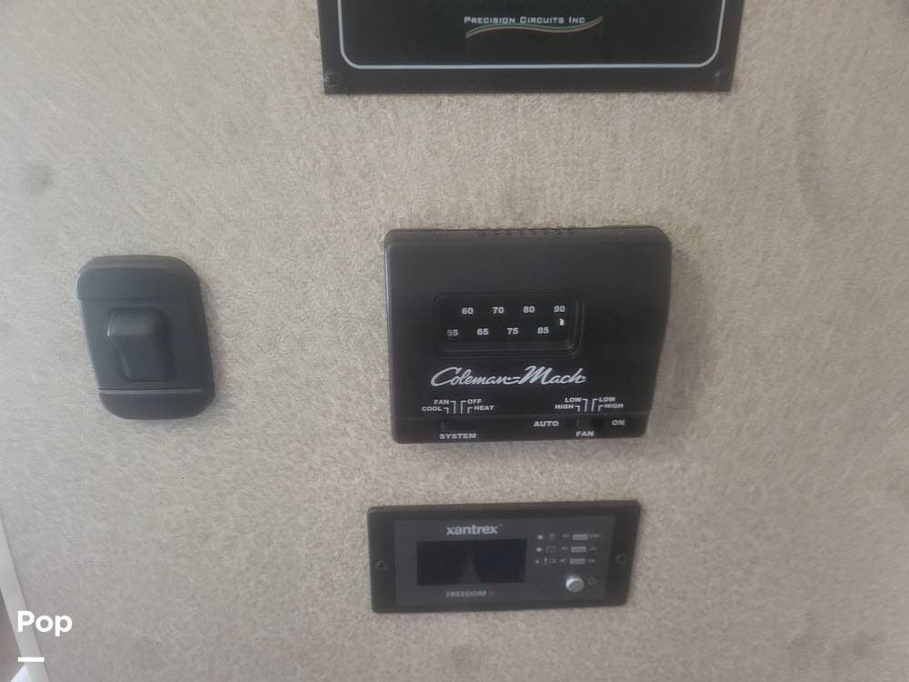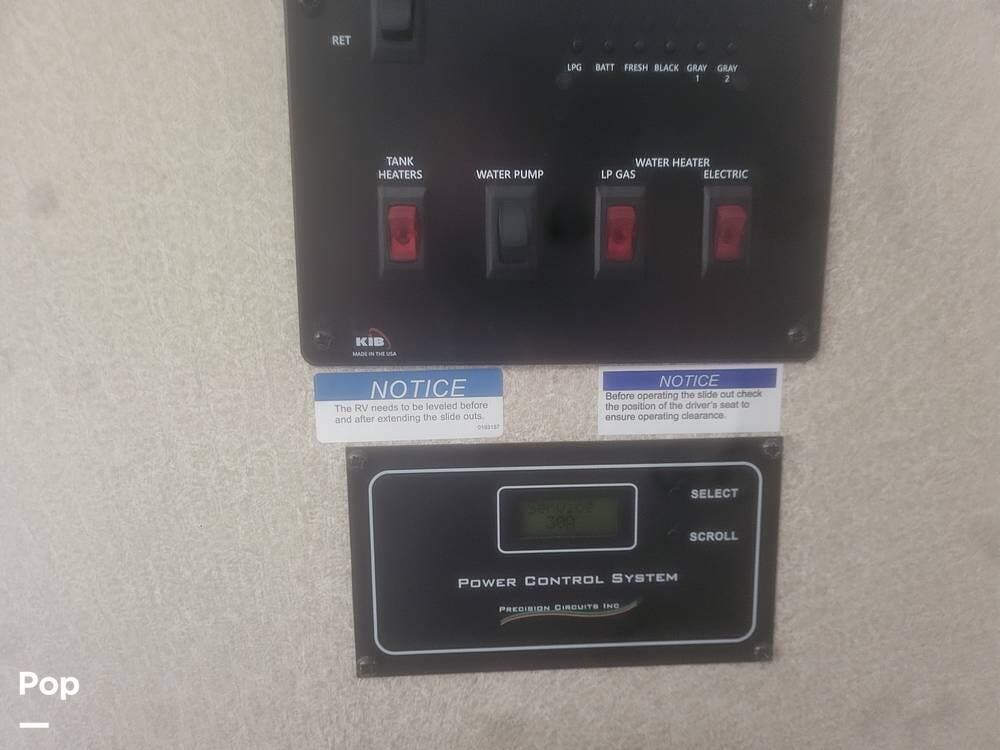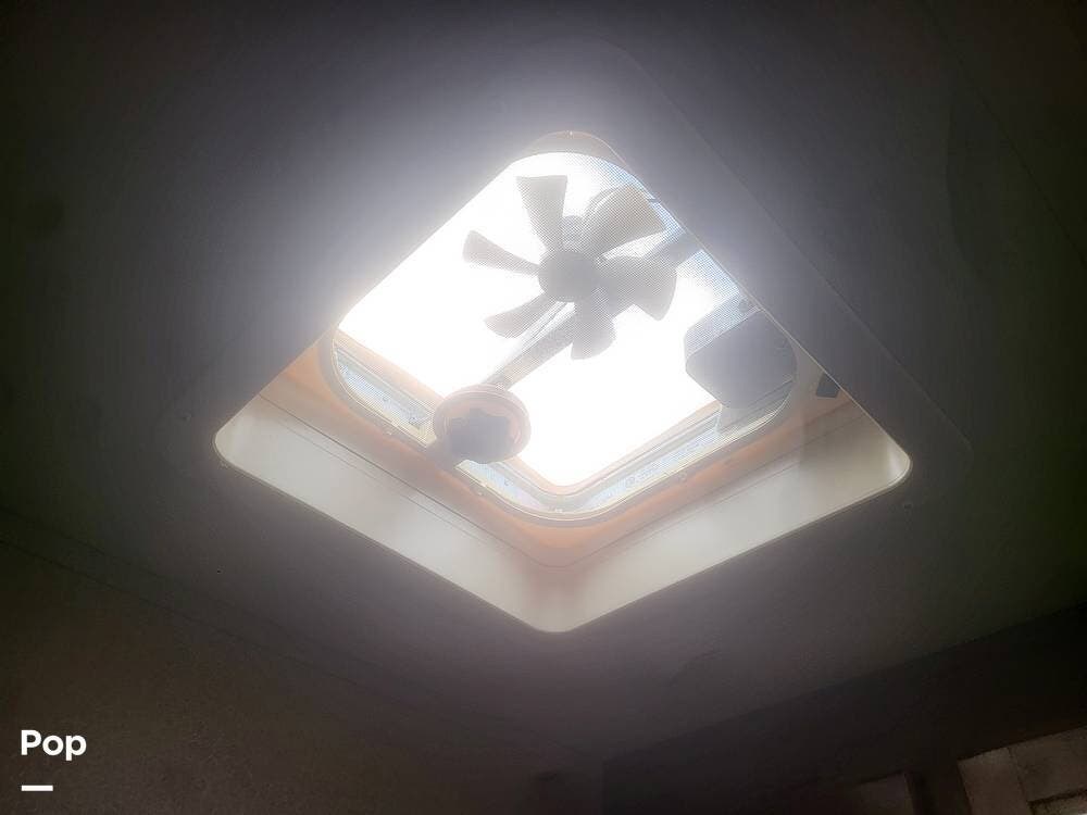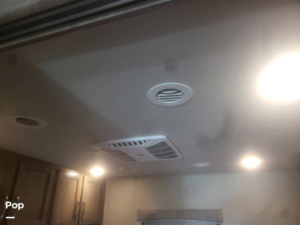 The twin 11,000 BTU air conditioning units, central heat, and ceiling power vents keep the RV comfortable year-round.