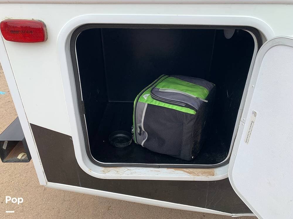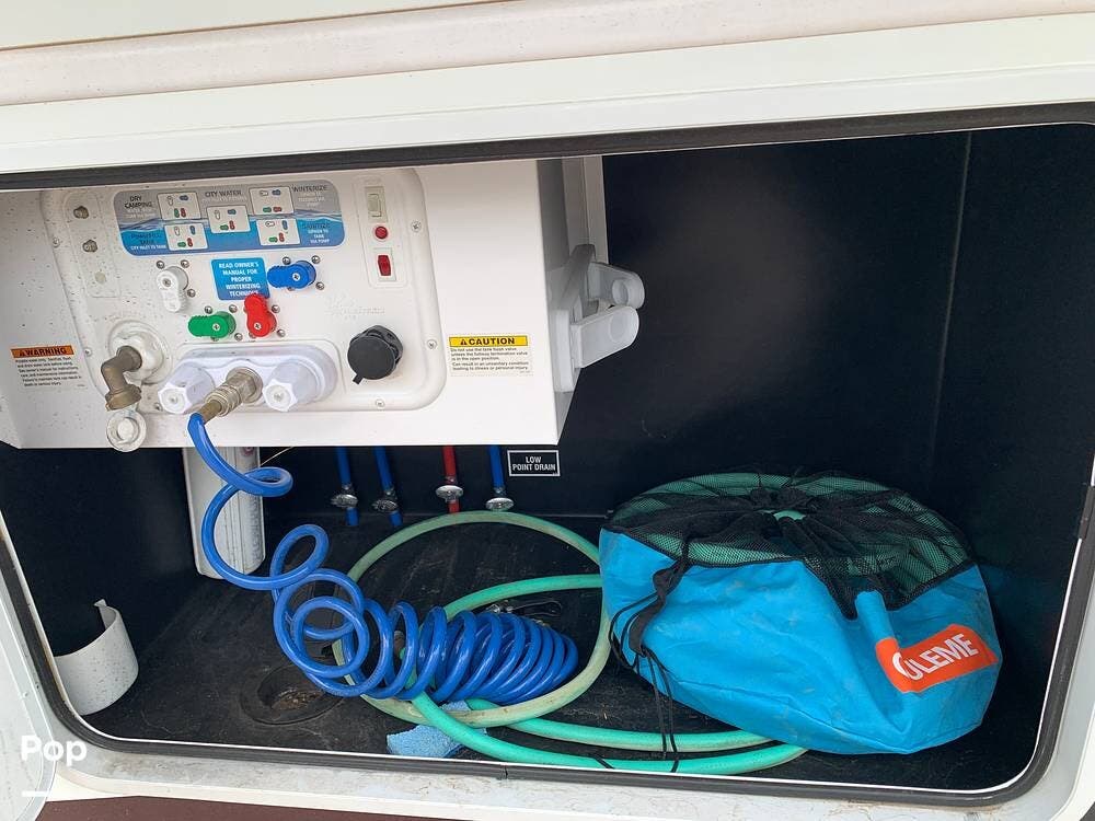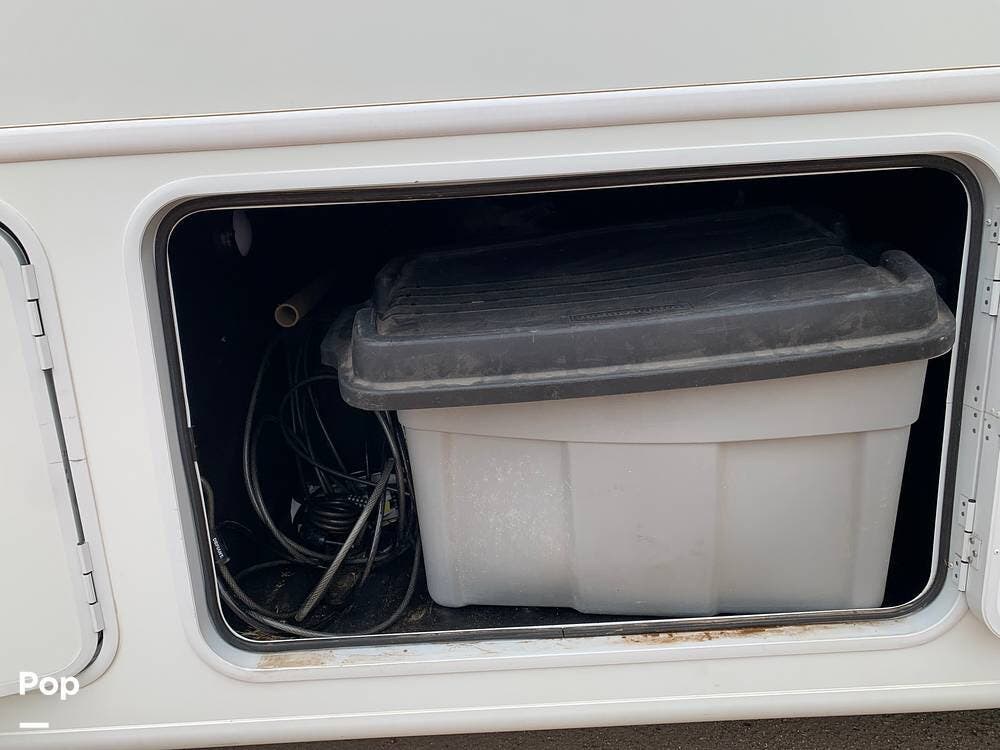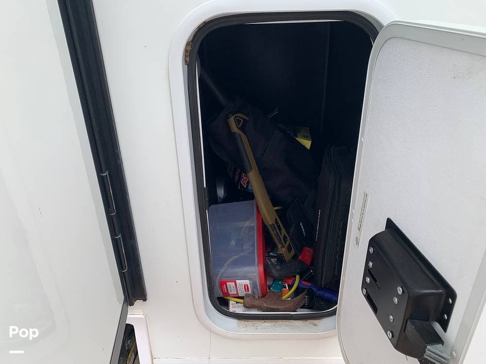 Other exterior highlights include automatic hydraulic leveling jacks, a 5,000-lb. rear hitch receiver with a dual connector and seven-pin plug, and lockable pass-through storage compartments with slam-latch doors.