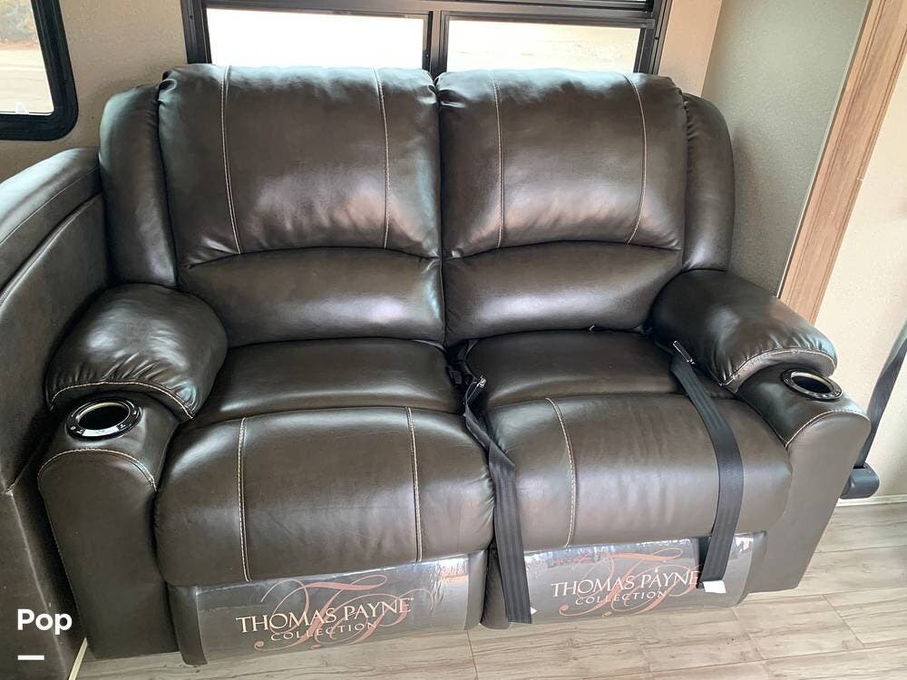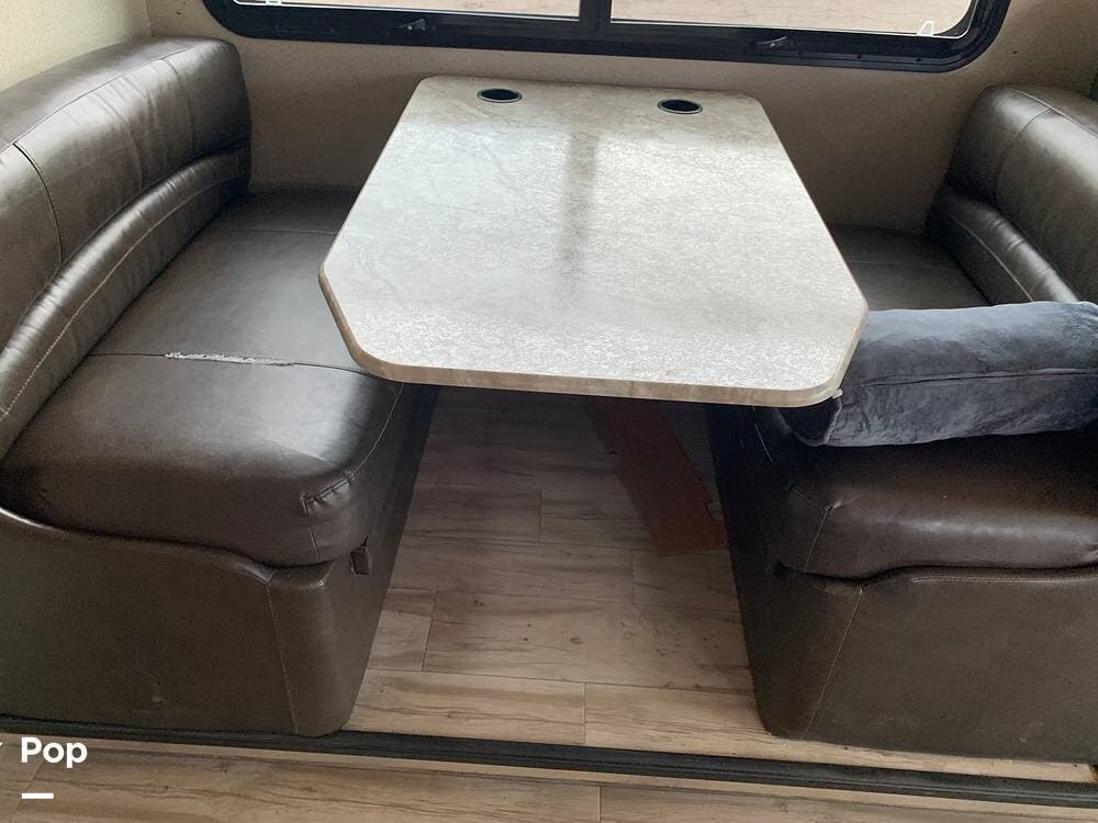 Stepping inside, the Vision 31V offers a spacious and inviting layout. The living area features a comfortable loveseat with recliners, as well as a booth dinette that can be converted into additional sleeping space. A power front overhead bunk provides extra sleeping capacity, bringing the total sleeping accommodation to up to five people.