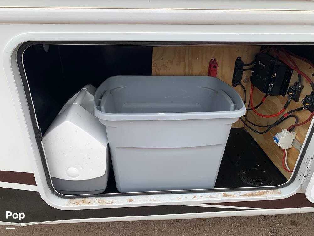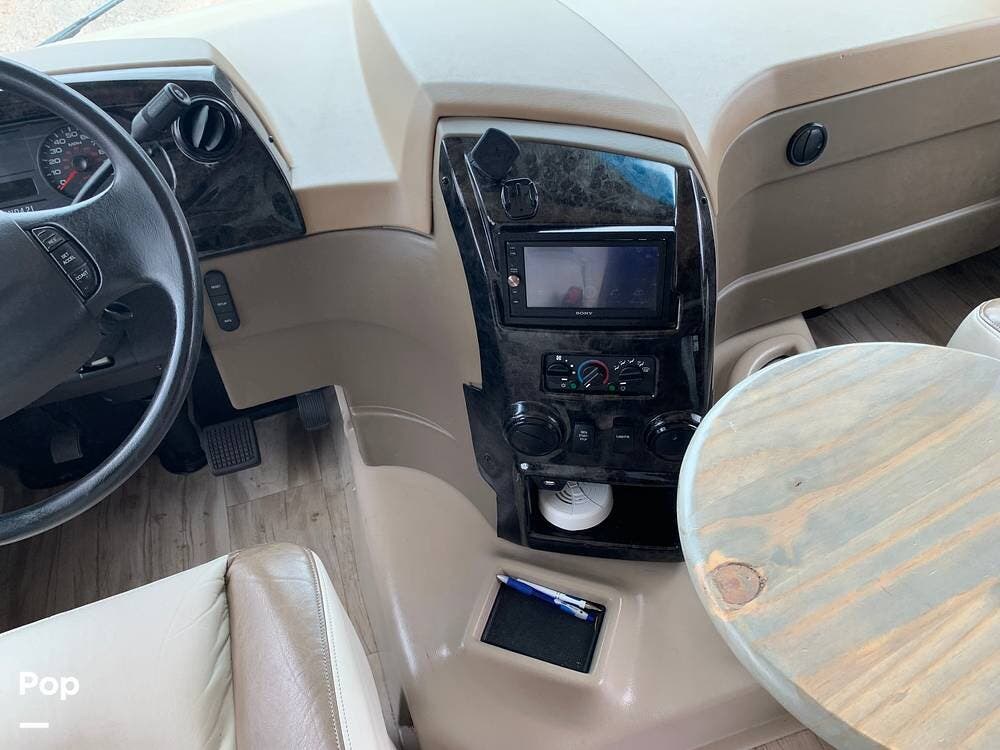 Features a Sony Infotainment Dash Radio, backup and side-view cameras with a monitor, and an LED TV in the living room. It's prepped for a satellite dish and includes a digital antenna with a powered amplifier.