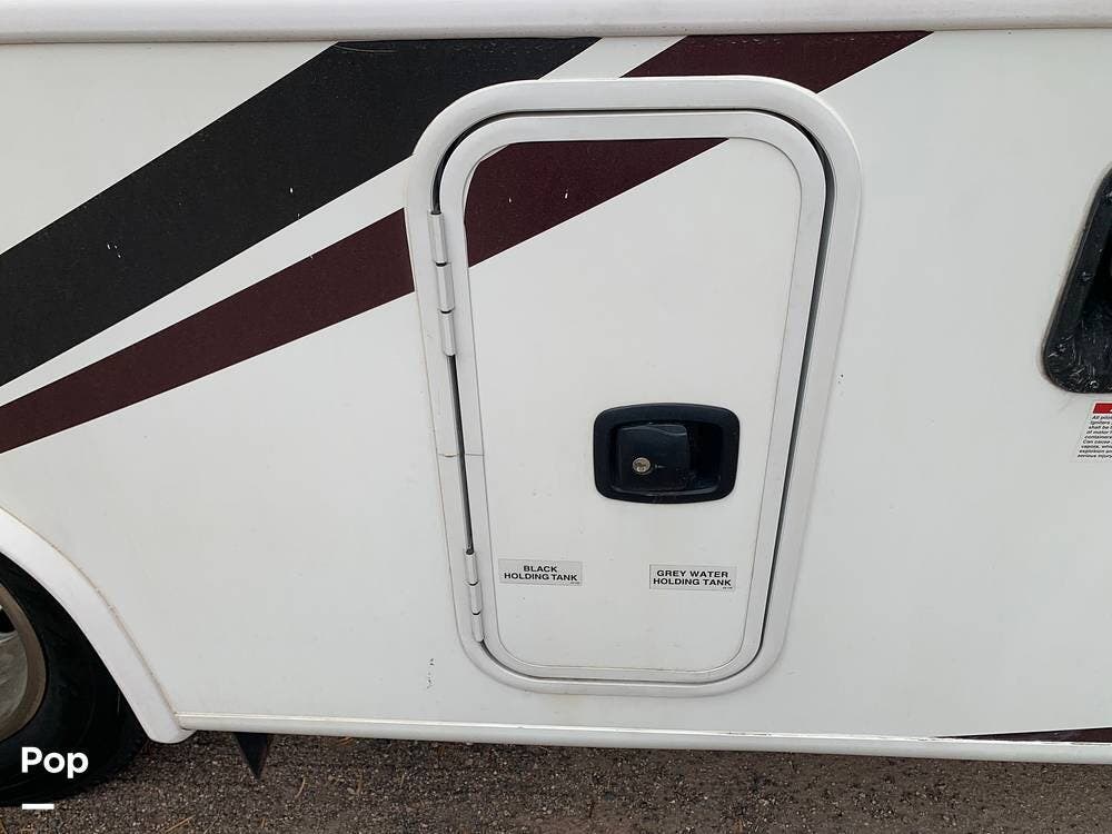 Measuring approximately 32 feet, 1 inch in length, the Vision 31V features a seamless, one-piece fiberglass front cap and white, high-gloss gel-coat fiberglass walls, which contribute to its sleek appearance and durable construction. It boasts two slide-outs, significantly expanding the interior living space.