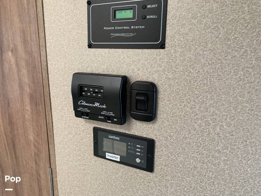 Equipped with dual 11,000-BTU A/C units and a 31,000-BTU auto-ignition ducted furnace, managed by an Energy Management System. Features a 30-amp electrical service cord, a 12V house battery, a 1,000-watt inverter, and an Onan 4.0kW generator.