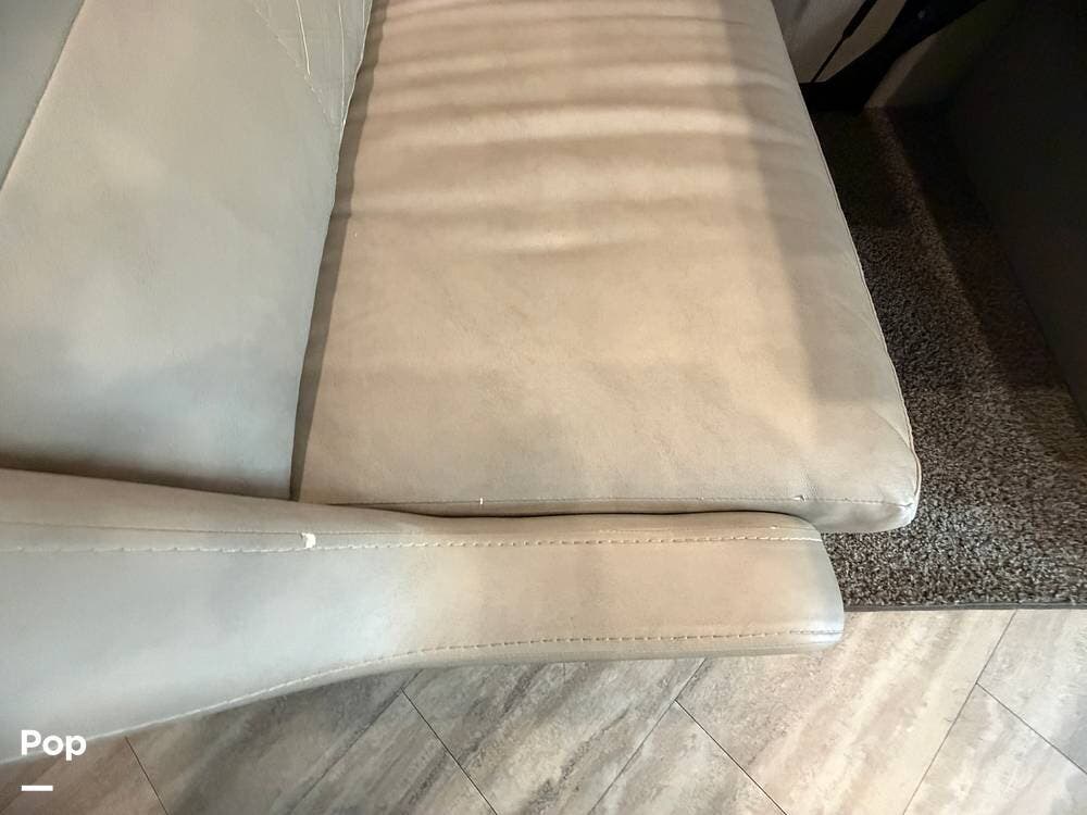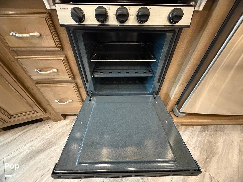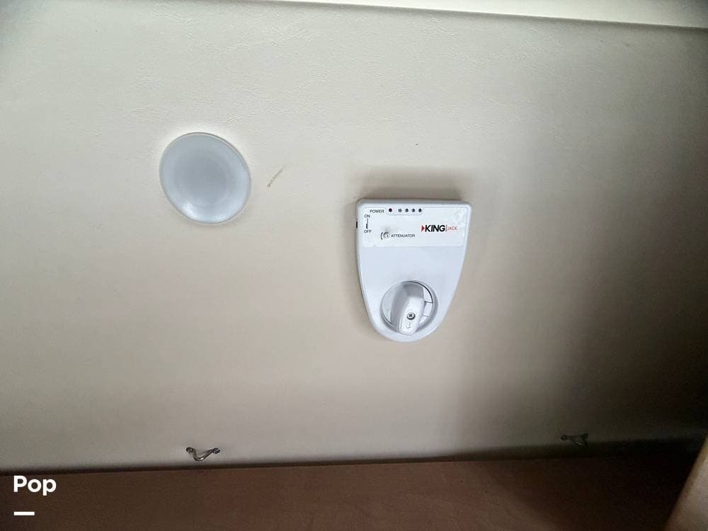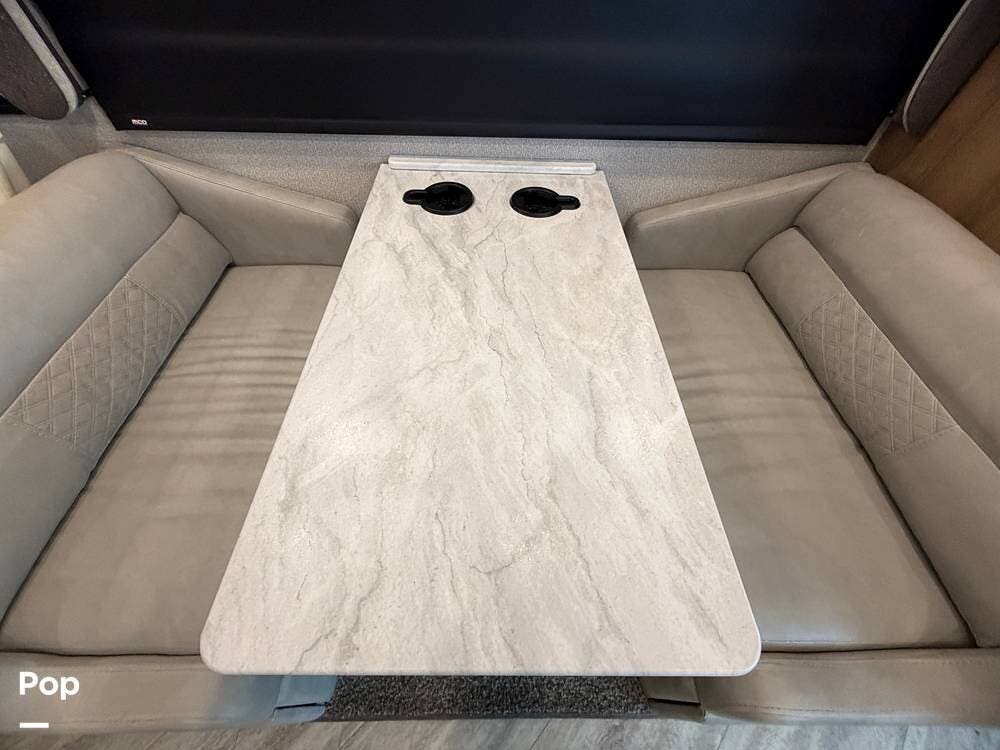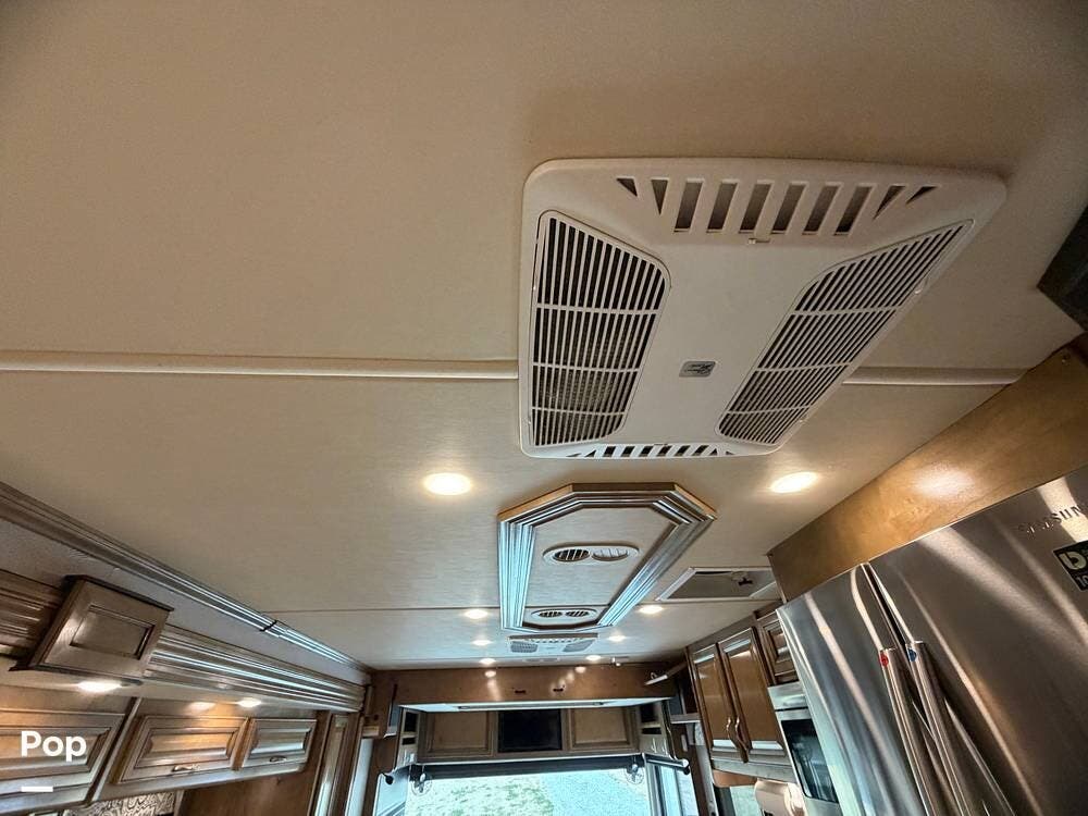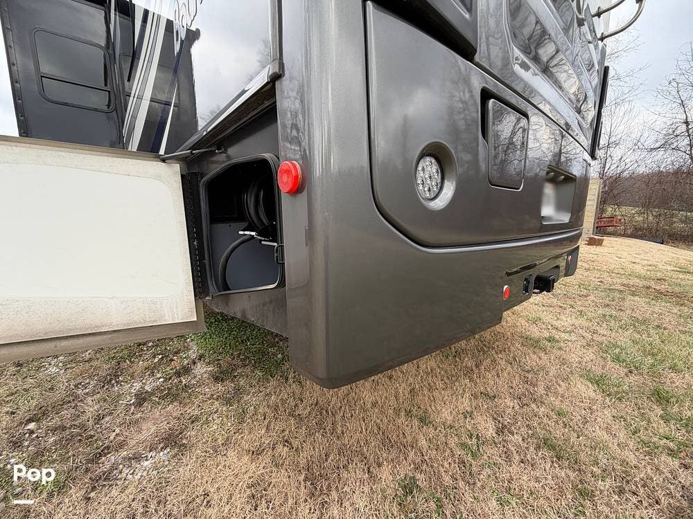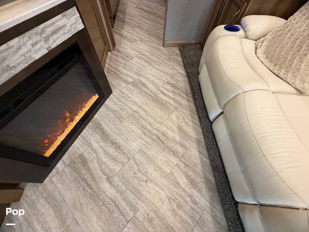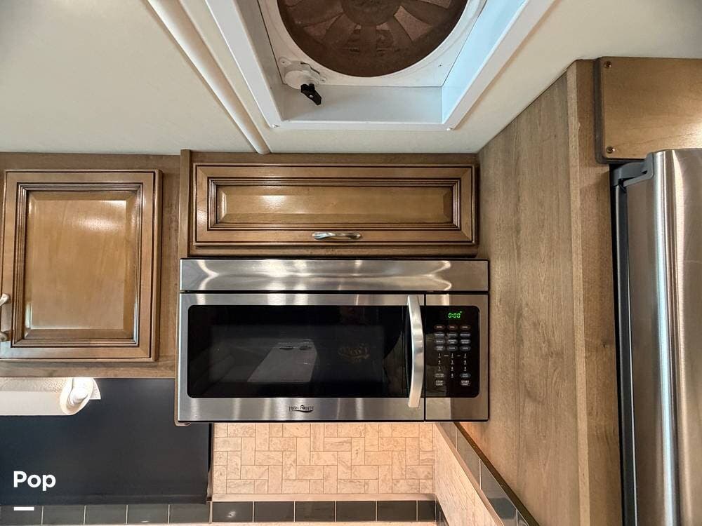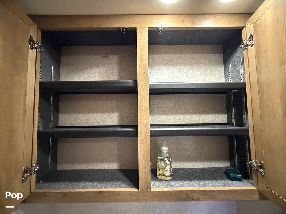 The desirable 35K floorplan features opposing slide-outs that create a wide-open living area, a convenient bath-and-a-half layout, and a power drop-down bed over the cockpit for additional sleeping space.