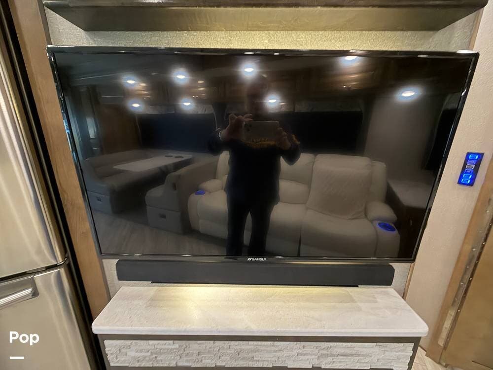 Entertainment is a strong point, with four TVs throughout the coach, including multiple interior televisions and an exterior TV for enjoying movies or games outdoors.