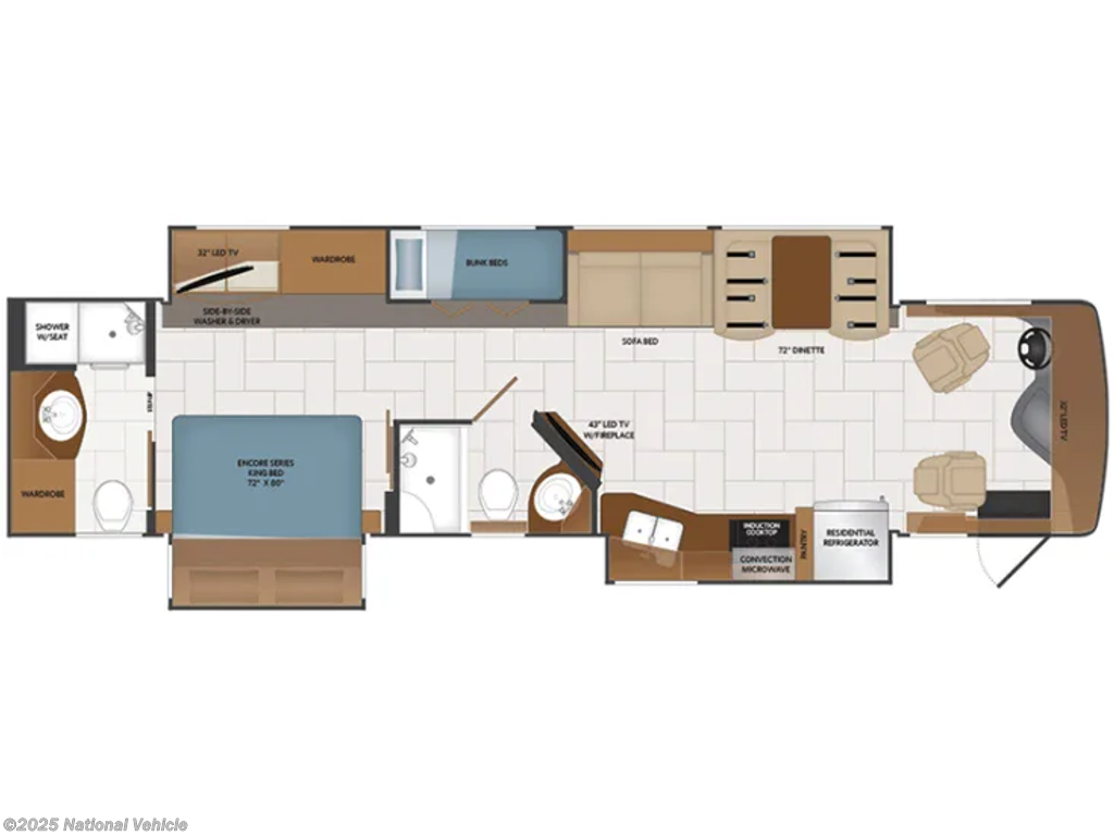 The 2019 Fleetwood Discovery 38N stands as one of the finest Class A diesel motorhomes in its category ? delivering the craftsmanship of a luxury condo with the capability of a diesel powerhouse. Its bath-and-a-half layout with bunks, heated tile floors, triple-zone A/C with Aqua-Hot, and premium full-body paint make it ideal for upscale family adventures or extended full-time living.
