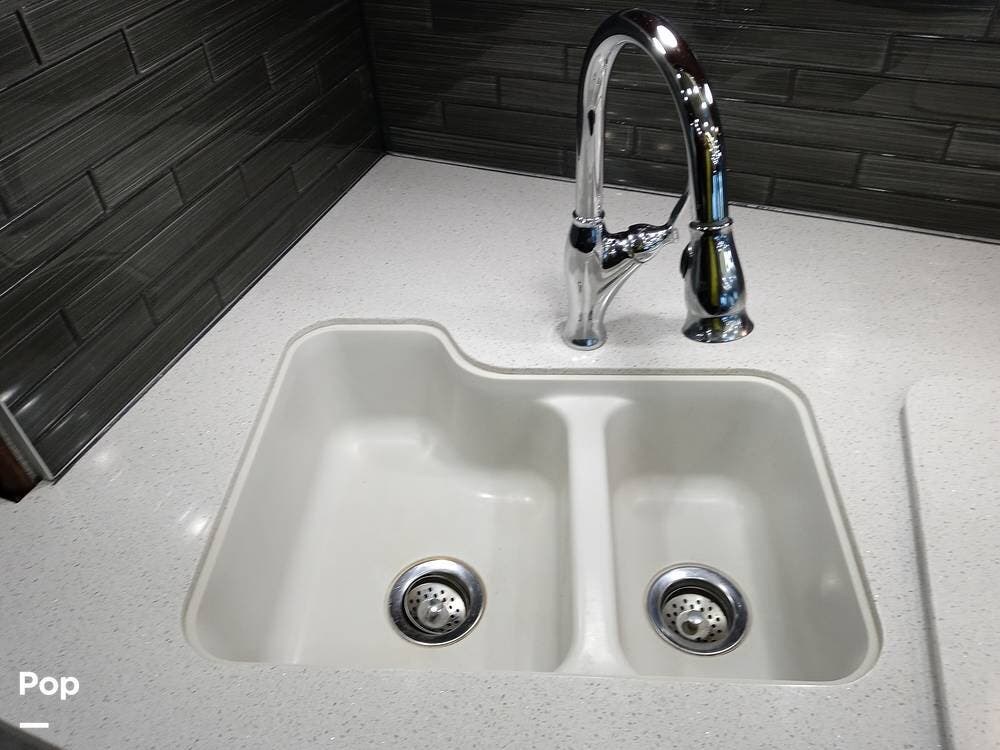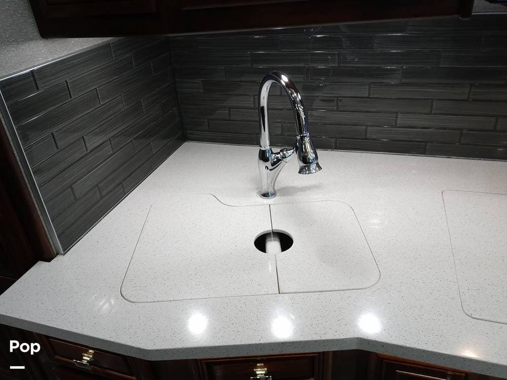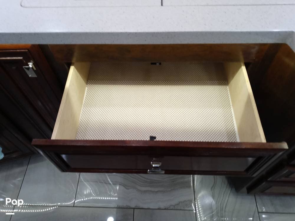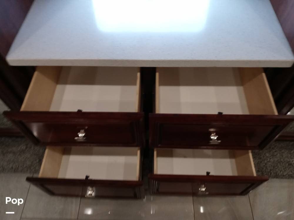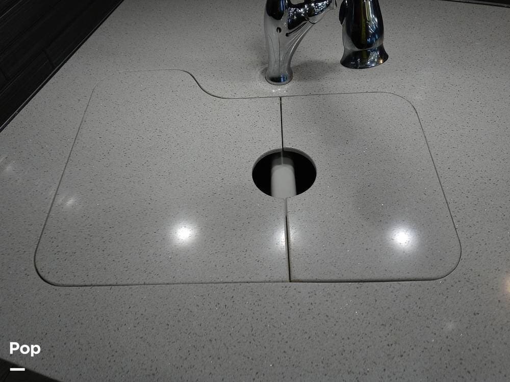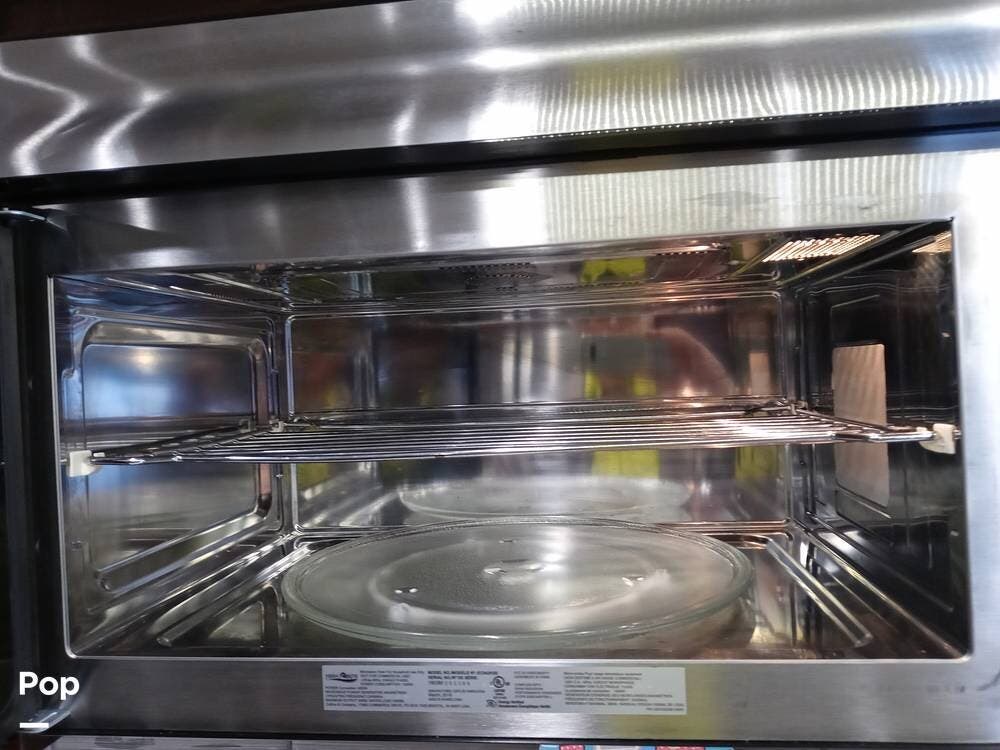 A wide-open floor plan includes a large kitchen with a high-output Induction electric two-burner cooktop, a large double-door stainless steel refrigerator freezer, and a drawer dishwasher. A great feature for versatility is the polished solid-surface countertops with sink and cooktop covers. Also included in the kitchen is a 1000-watt microwave-convection oven.