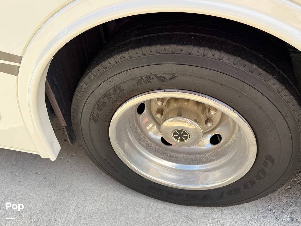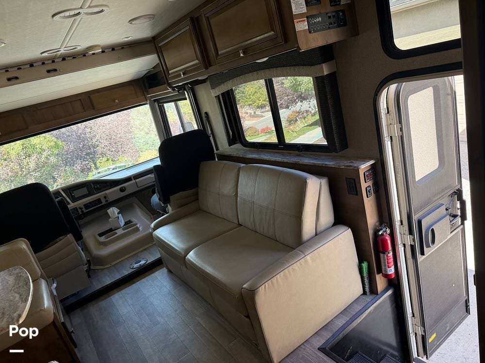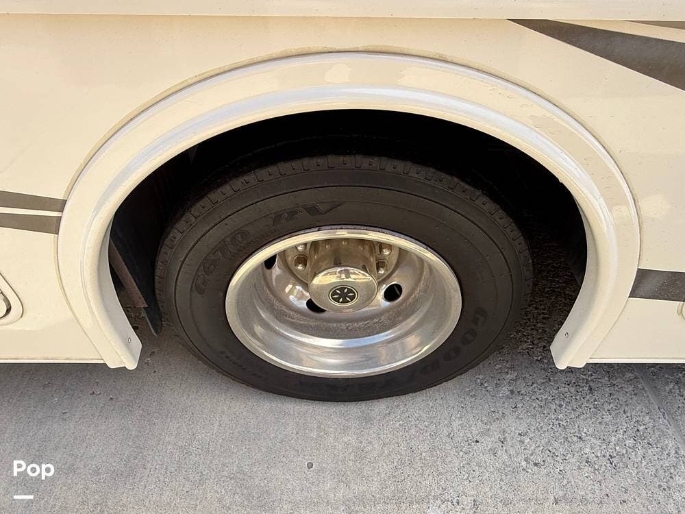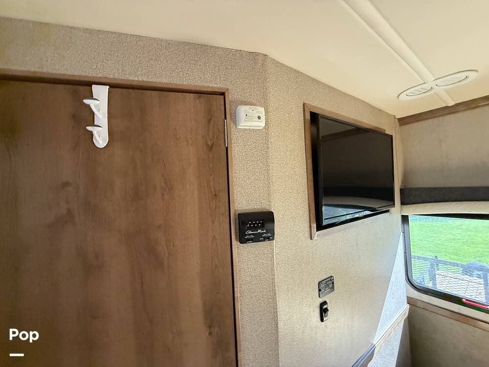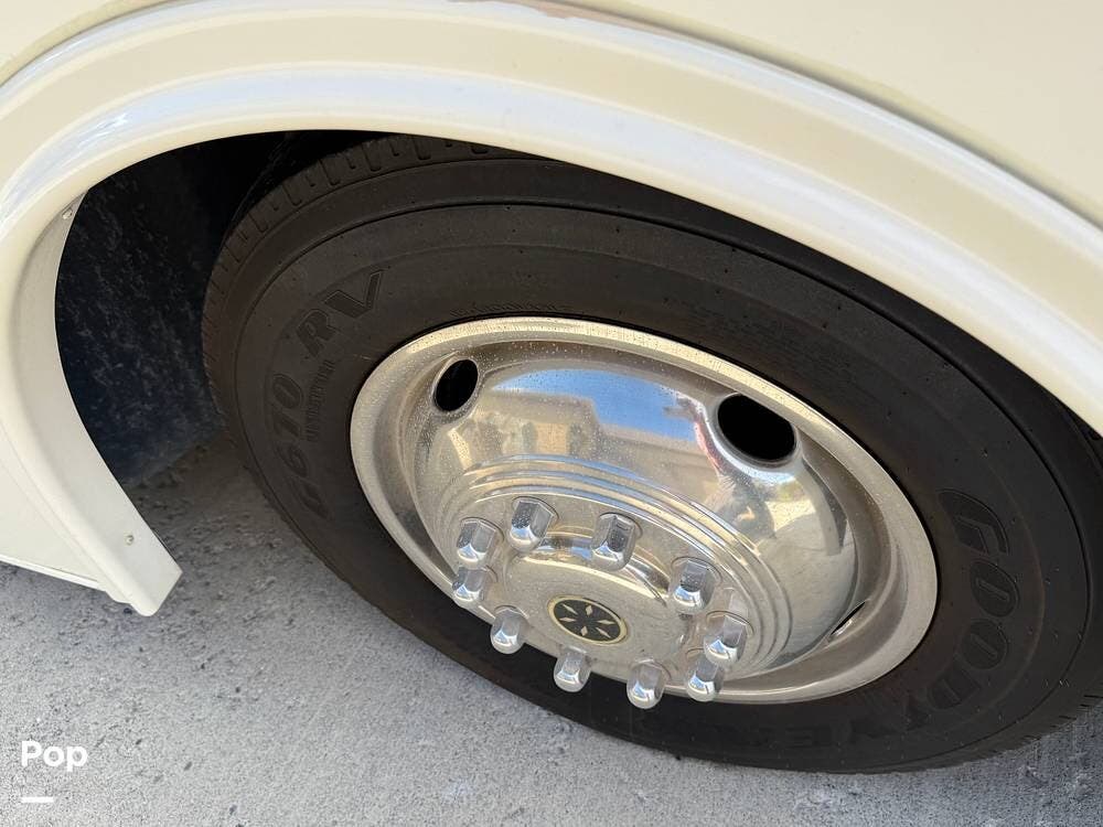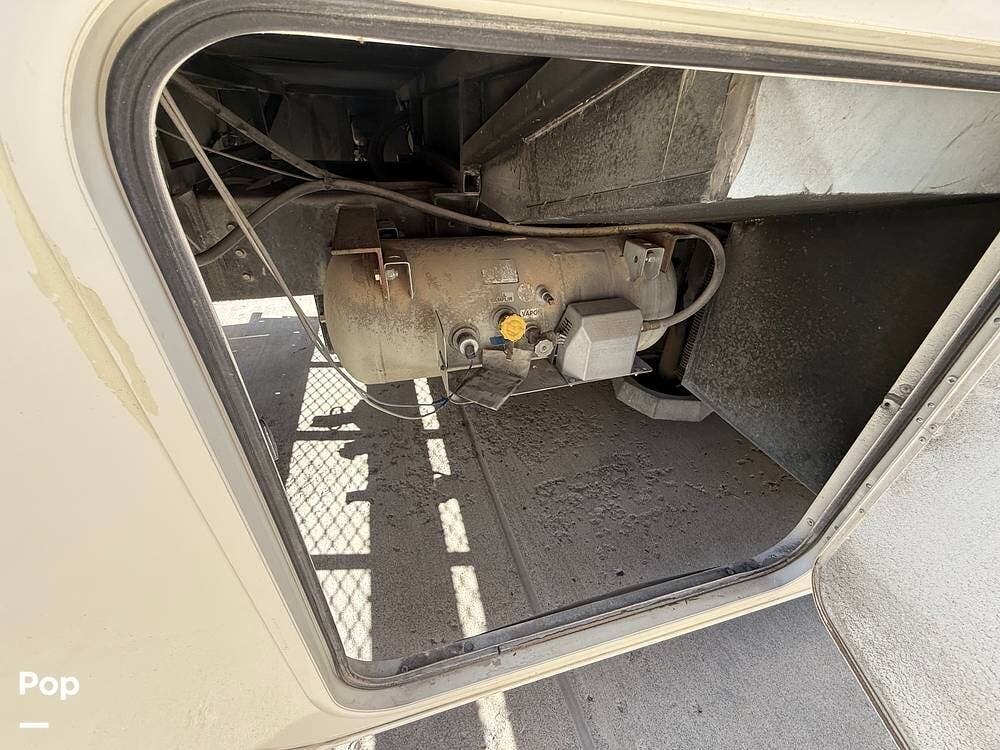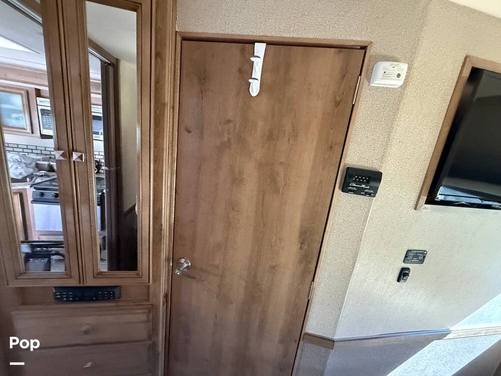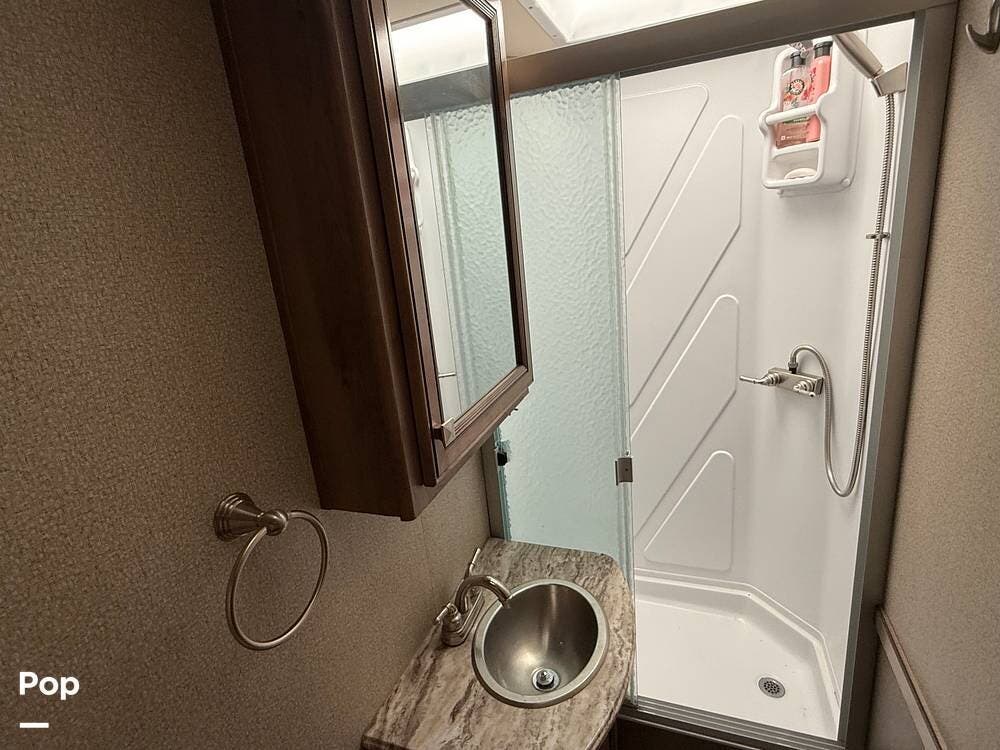 The kitchen features solid-surface countertops, a three-burner cooktop, microwave, and residential-style refrigerator, ready for home-cooked meals on the go. Relax after a day of exploring with the large flat-screen TV, built-in entertainment center, and efficient climate control system.
