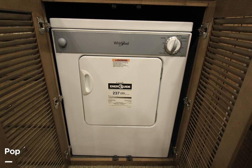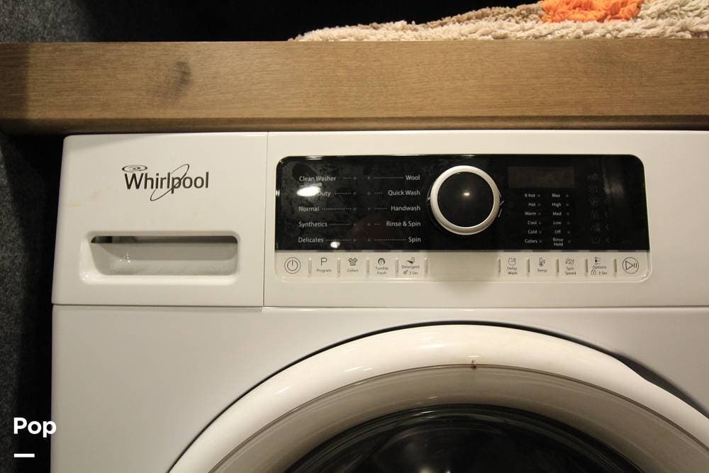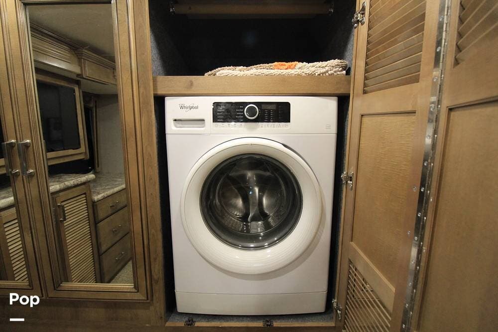 Both the washer and dryer are tucked away in the cabinets with plenty of space left over for your wardrobe as well!