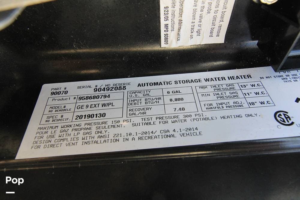 - Water Capacity (Fresh)100 gal