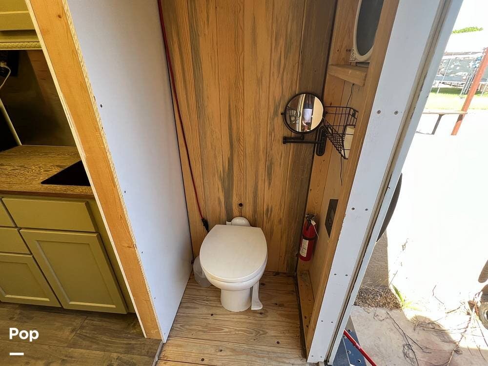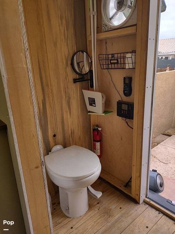 The bathroom is not completed; the toilet works, no shower, and it will need to be finished if wanting a shower.