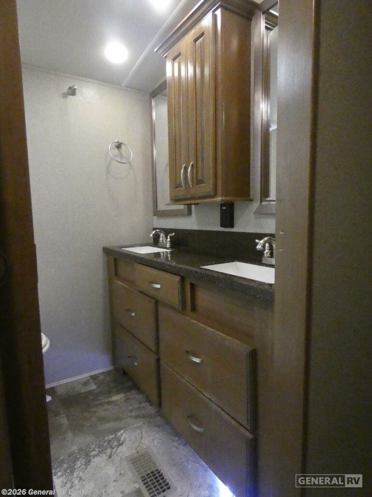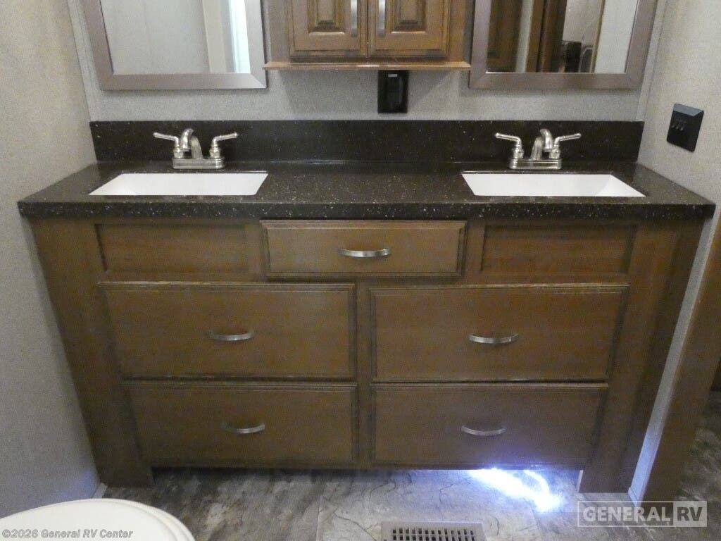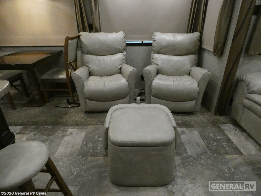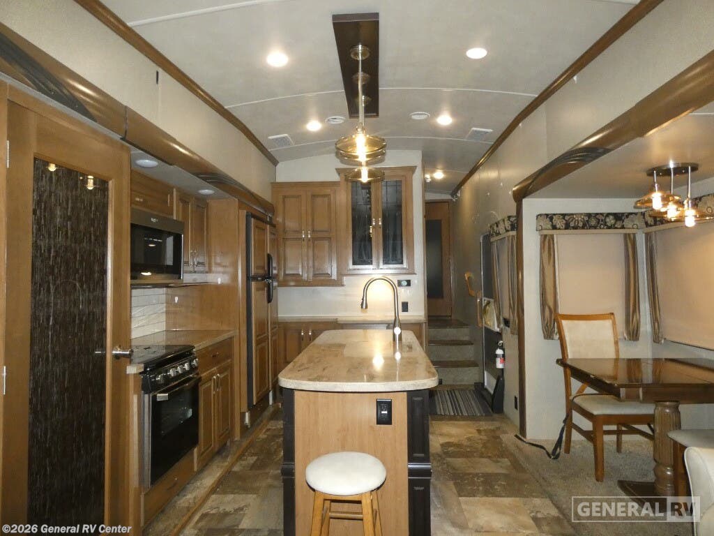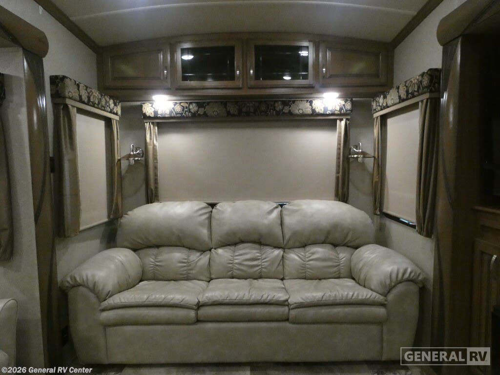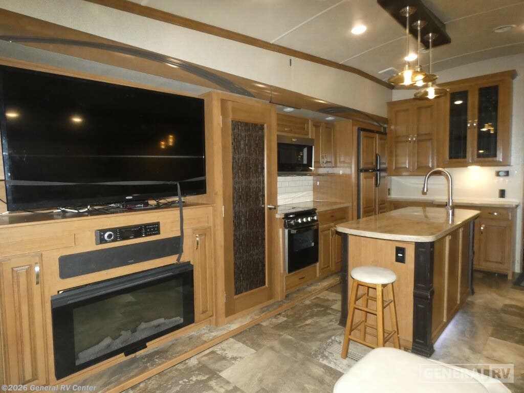 Discover the epitome of luxury and comfort with the 2019 Forest River Cedar Creek Hathaway Edition 36CK2. This fifth wheel is designed for those who seek a perfect blend of elegance and practicality. As you explore the spacious interior, you'll find a beautifully appointed rear living area featuring a cozy entertainment center and fireplace, perfect for relaxing evenings. The center kitchen is a chef's dream, equipped with a full-size electric refrigerator, a three-burner cooktop, and ample pantry space, making meal prep a delight. The front bedroom offers a serene retreat with a king-sized bed and plenty of storage, including a dresser and a wardrobe prepped for a washer and dryer. The center bath, complete with a shower and seat, ensures convenience and comfort. With a generous 18 ft. powered retractable awning, you can enjoy the outdoors in style. Whether you're embarking on a weekend getaway or a longer adventure, this RV provides all the comforts of home on the road. For more details, visit your nearest General RV dealership.