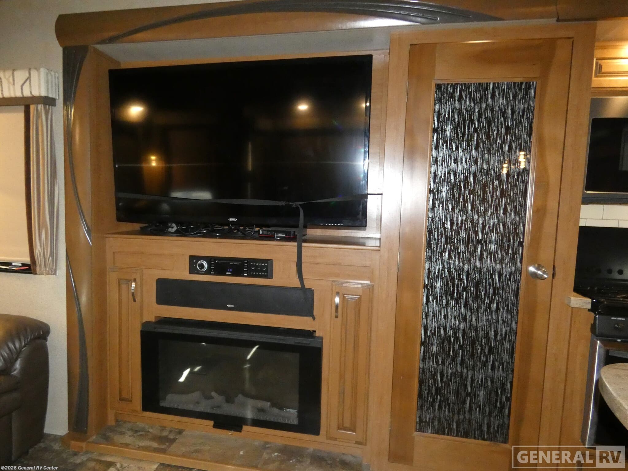 Discover the epitome of luxury and comfort with the 2019 Forest River Cedar Creek Hathaway Edition 36CK2. This fifth wheel is designed for those who seek a perfect blend of elegance and practicality. As you explore the spacious interior, you'll find a beautifully appointed rear living area featuring a cozy entertainment center and fireplace, perfect for relaxing evenings. The center kitchen is a chef's dream, equipped with a full-size electric refrigerator, a three-burner cooktop, and ample pantry space, making meal prep a delight. The front bedroom offers a serene retreat with a king-sized bed and plenty of storage, including a dresser and a wardrobe. The center bath, complete with a shower and seat, ensures convenience and comfort. With a generous 18 ft. powered retractable awning, you can enjoy the outdoors in style. Whether you're embarking on a weekend getaway or a longer adventure, this RV provides all the comforts of home on the road. For more details, visit your nearest General RV dealership.