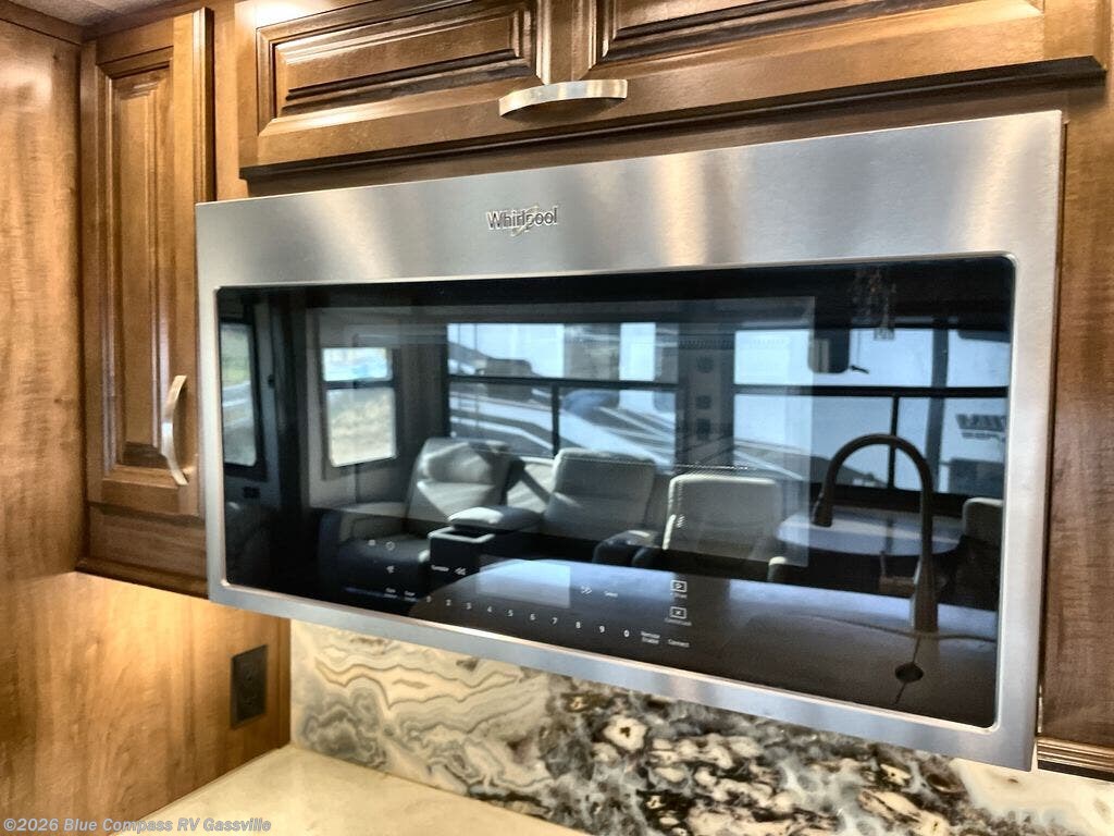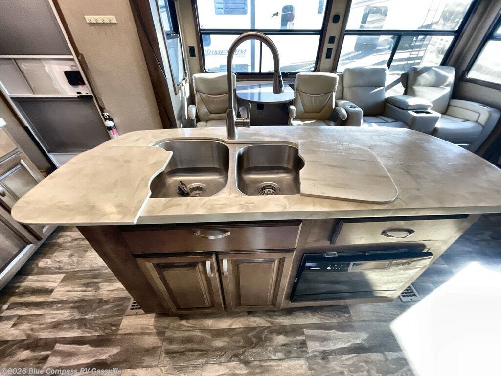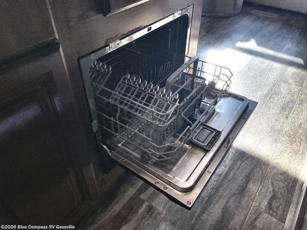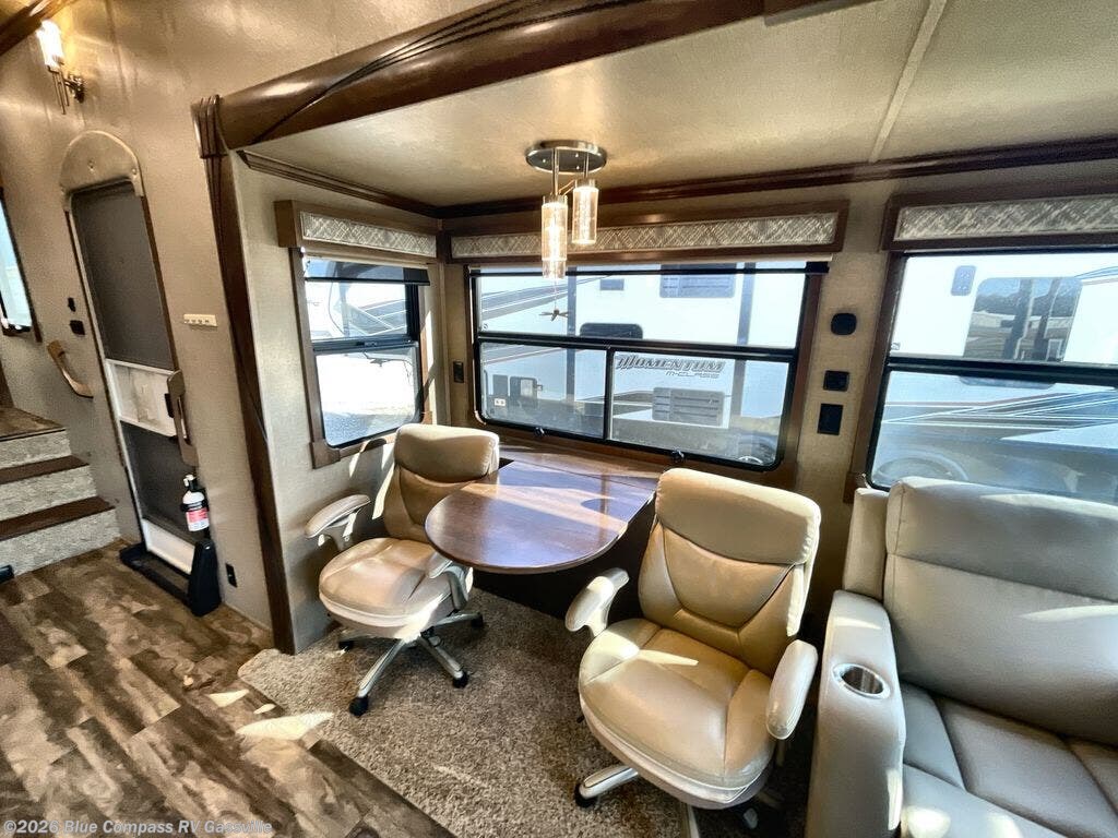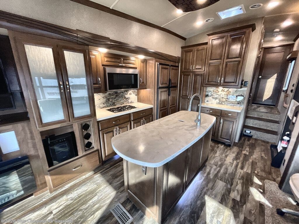 This fifth wheel is the perfect couple's coach to enjoy traveling the countryside with or setting up home base for awhile longer at your favorite location. From the three spacious slide outs for increased interior space to relaxing at the theater seats while enjoying the fireplace, you will feel right at home! The kitchen island has a double sink, extra counter space, plus you can add an optional dishwasher which will speed up the clean-up process. Enjoy your meals at the free-standing dinette, and at night head up the stairs to the private front bedroom where you will find a king-size bed, a full-length wardrobe for your hang-up clothes, plus there is a spot that has been prepped for a washer and dryer so that you can easily keep up with the laundry while you are away from home!