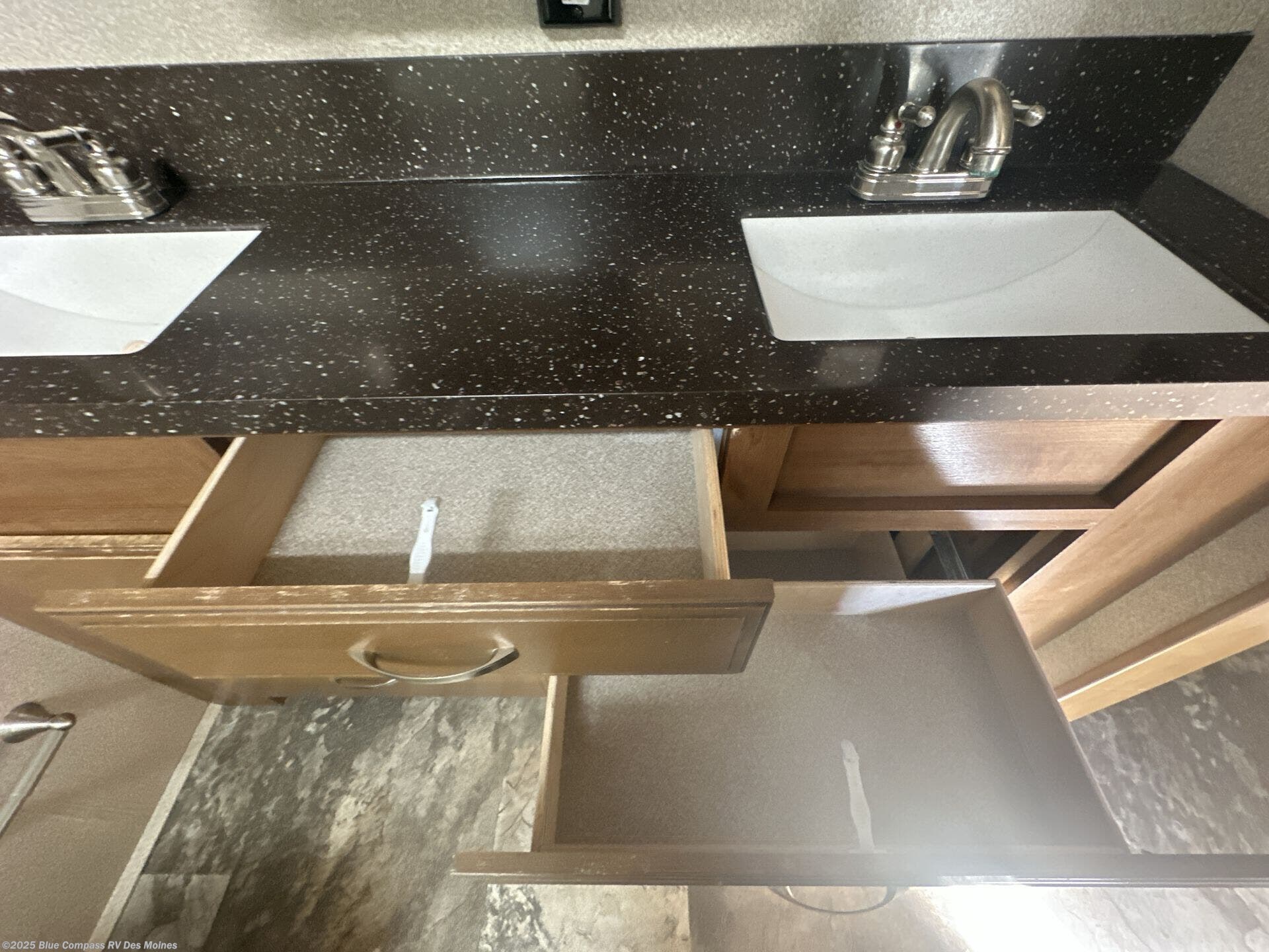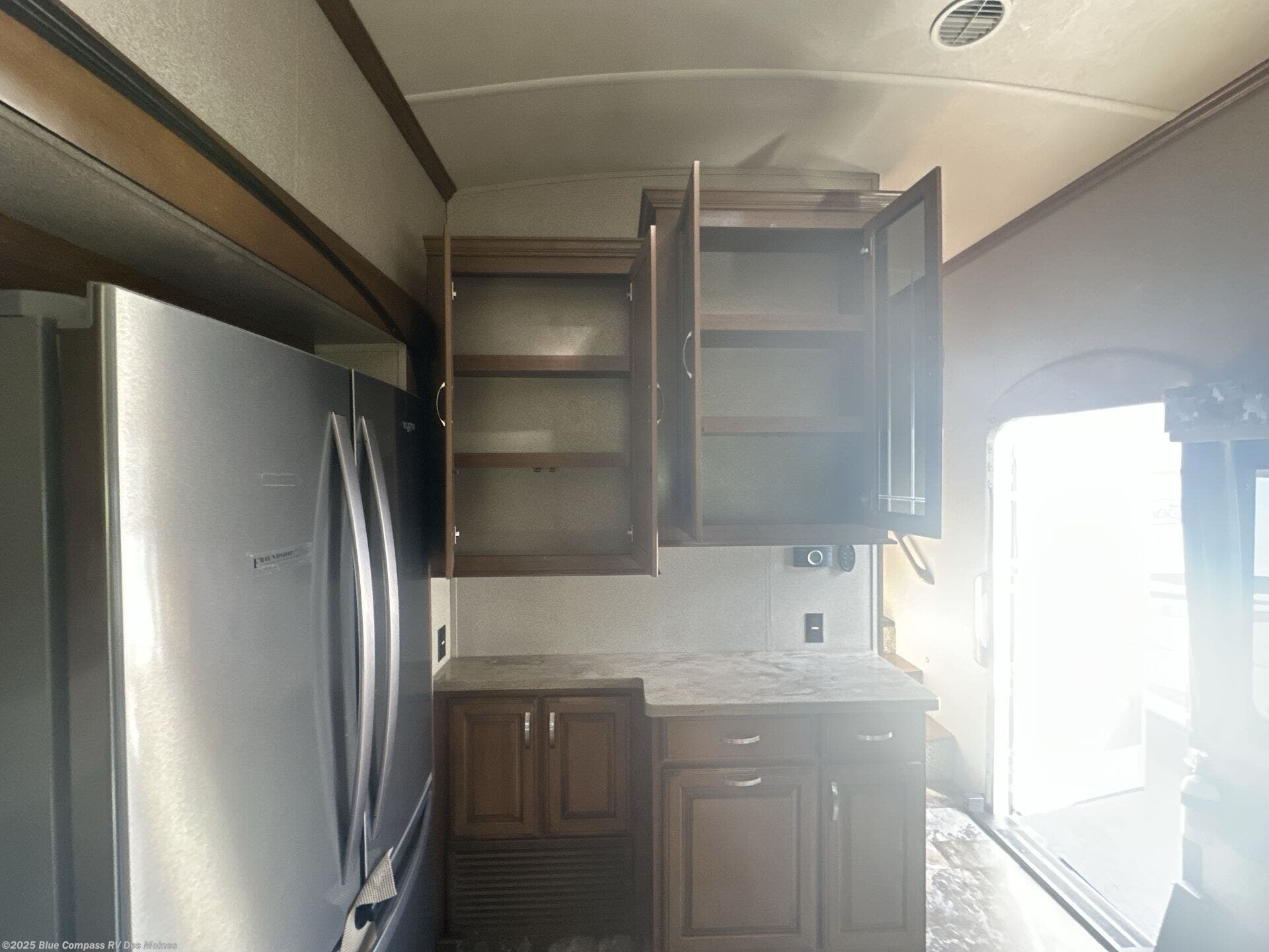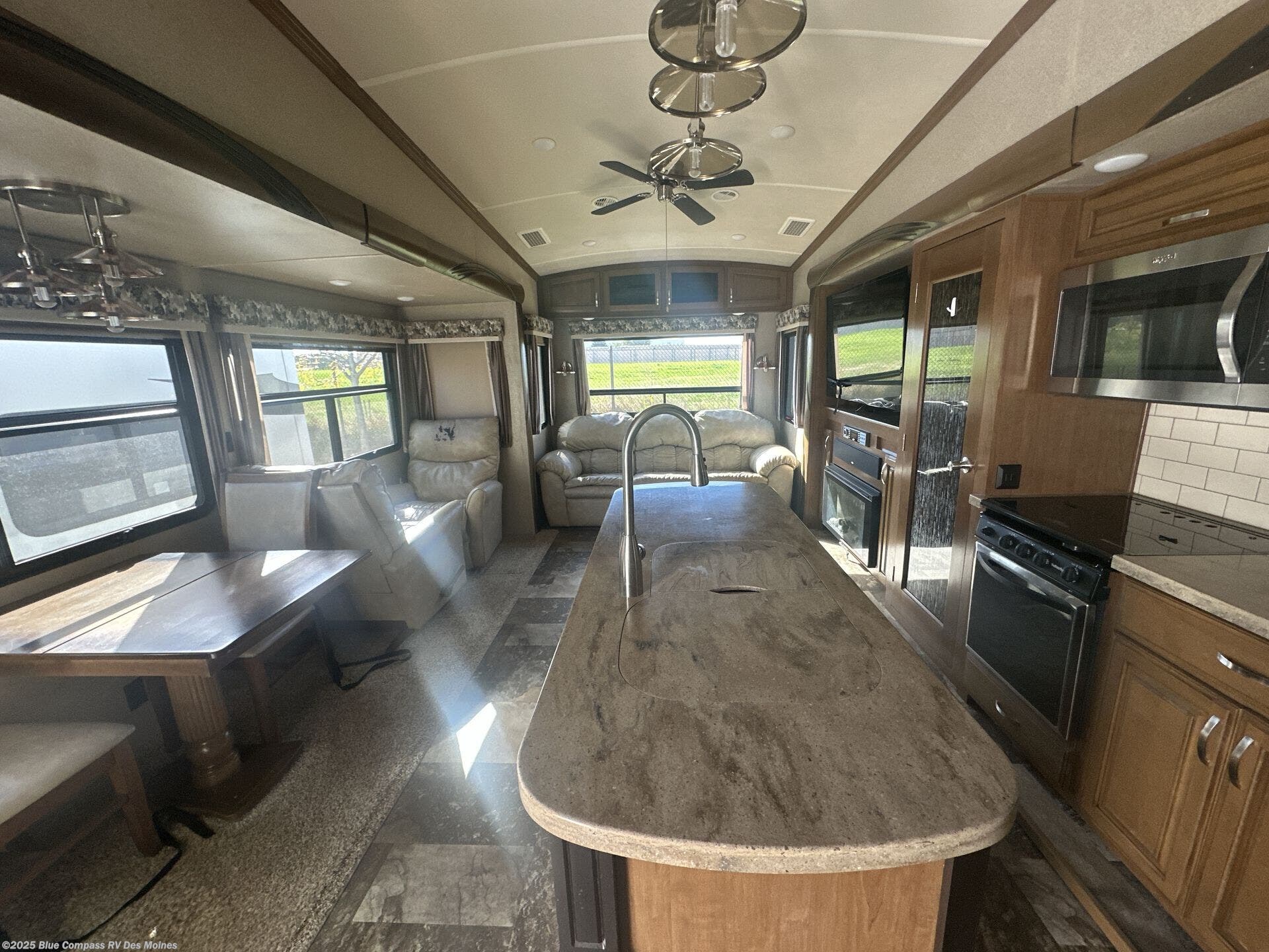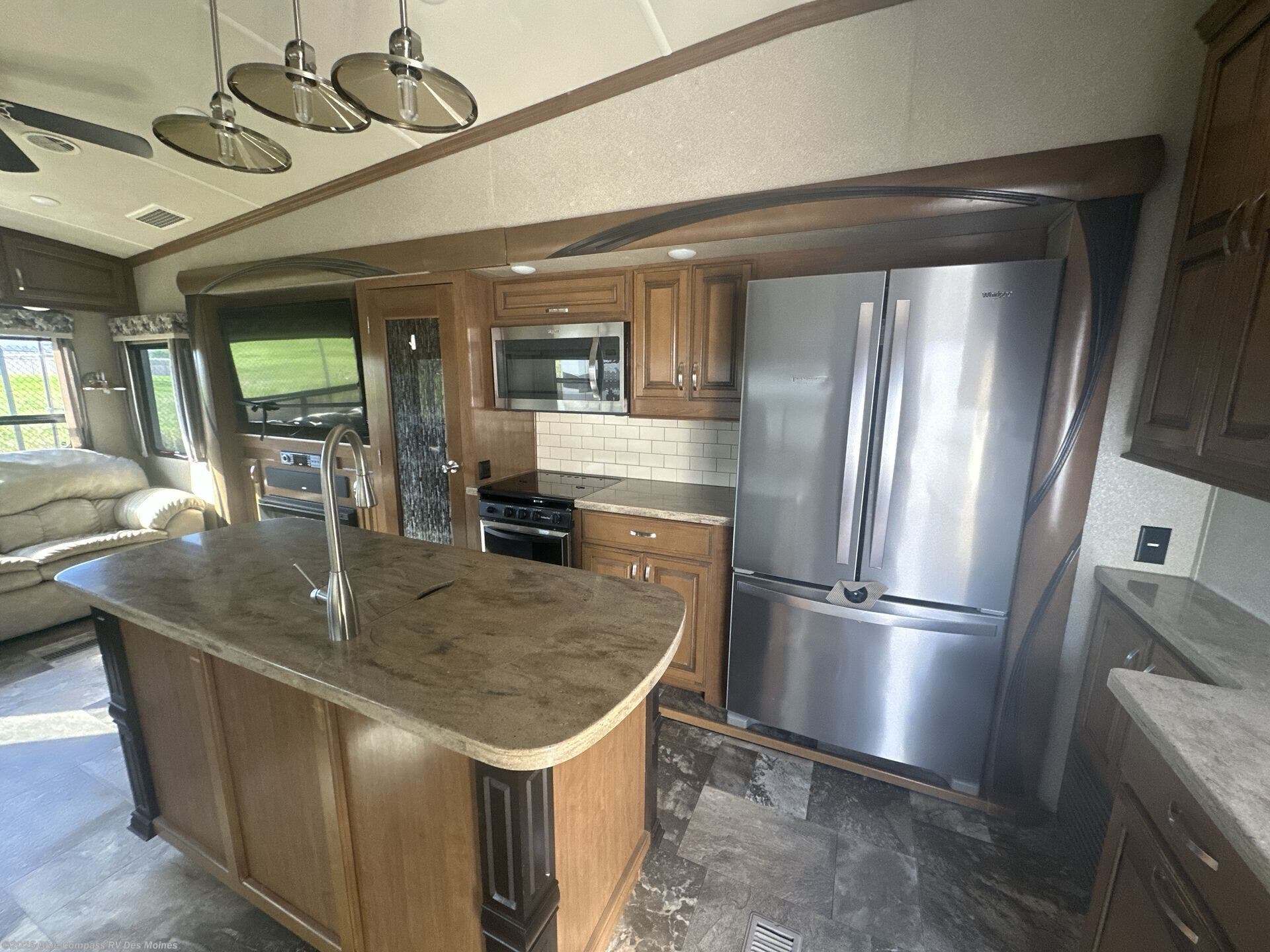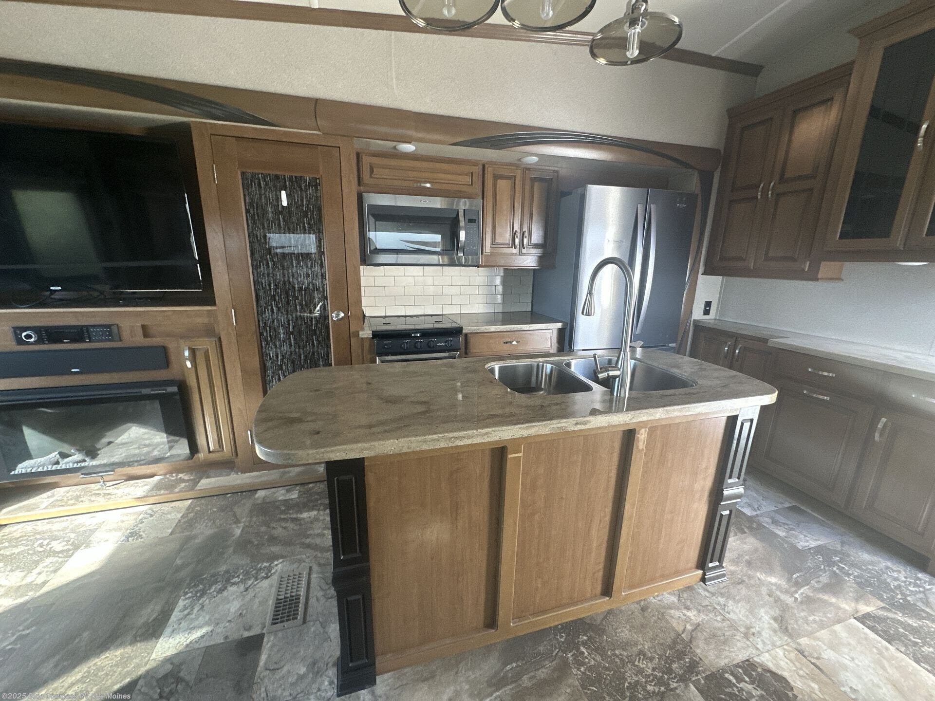 Imagine camping in your own fifth wheel at your favorite campground once a month or traveling to see new places. You don't have to leave any amenities behind when you have this model with you. In the kitchen there is plenty of work space to prepare meals when you aren't cooking over the campfire. Clean up is a breeze at the center island with the double sink. You will love the views out the panoramic window and while looking at the fireplace underneath the 50" LED TV. When you are ready to call it a day, then head up the steps to the full bathroom with Jack and Jill sinks including a full wall, back-lit mirror to the private front bedroom. The Denver king bed, and storage in the large wardrobe and a dresser should accommodate all your needs. This room has even been prepped for a washer and dryer if you choose to add that option, you can easily keep up with your laundry while you are away from home!