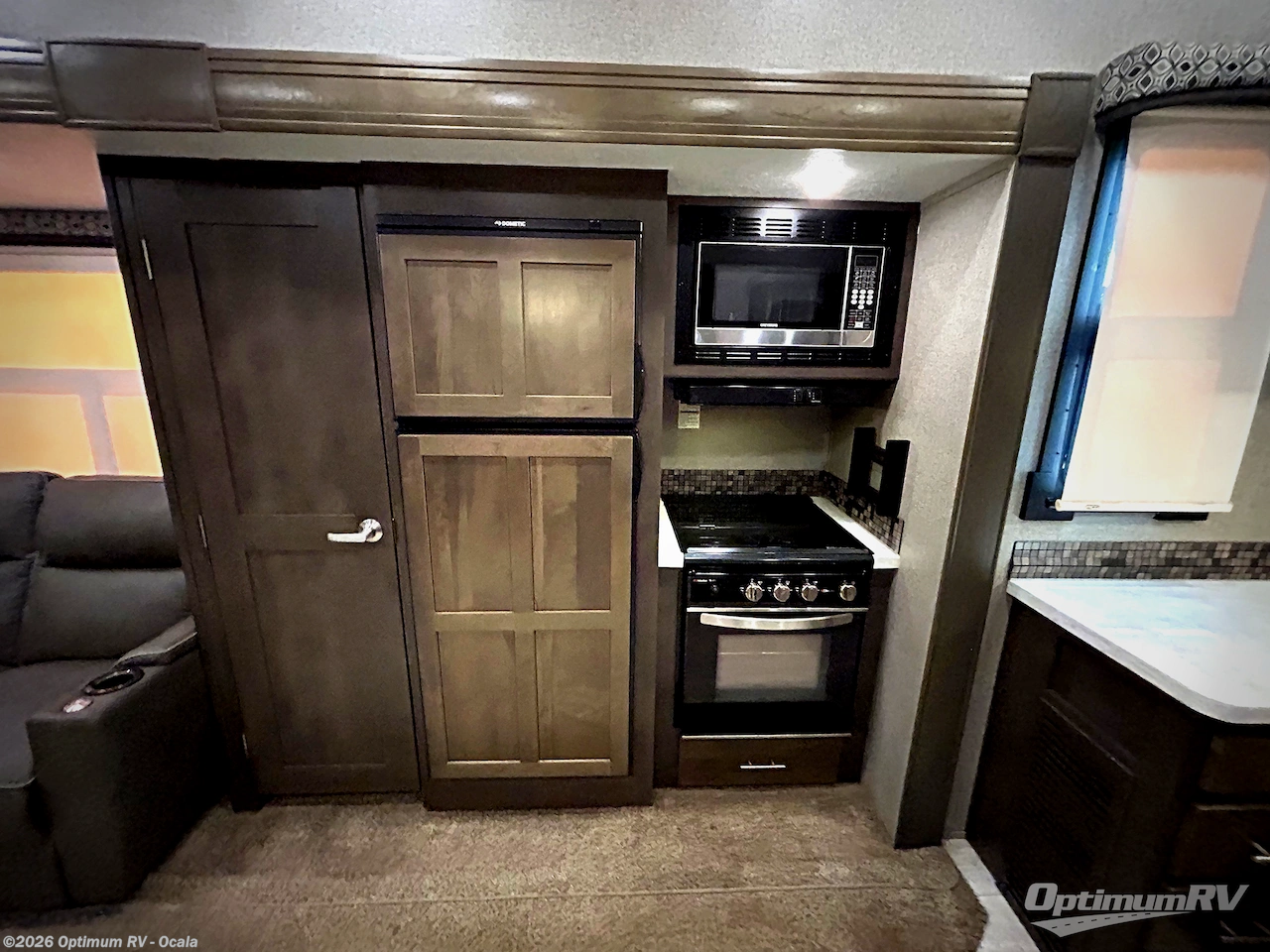 Don't pass up your chance to camp in luxury with this Forest River Classic Super Lite 8528CBS fifth wheel! It provides all of the features that you will need to feel like you're still at home while camping, plus options to add that will make it even better. Some of these features are the optional washer/dryer to keep you clean throughout your whole trip, the queen Serta bed which can be changed out for the optional king bed, and the king U-shaped dinette to enjoy your meals at. The hardest decision you will have is whether or not to cook indoors or outdoors. At the outdoor kitchen there is a swing-out stove, a refrigerator to keep your perishables fresh, and overhead cabinets to hold your cooking utensils, plus there is even an outdoor gas grill at the rear. What better way to wind down your night than to relax in front of the fireplace on either the 76" hide-a-bed sofa or the 60" theater seating which has cup holders so that you don't spill your favorite beverage!