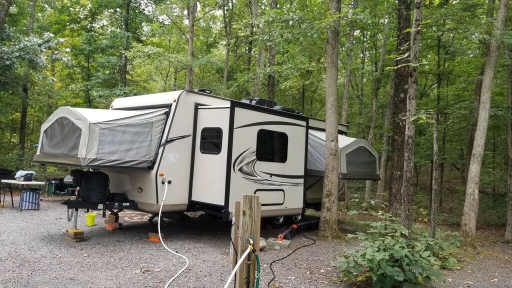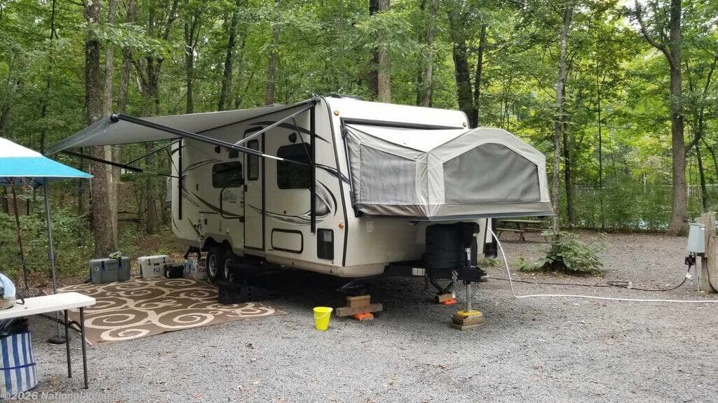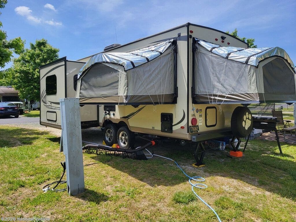 Take your camping experience to the next level with this 2019 Forest River Flagstaff Shamrock 233S ? a versatile hybrid travel trailer that blends the comfort of a traditional camper with the open-air feel of tent camping.