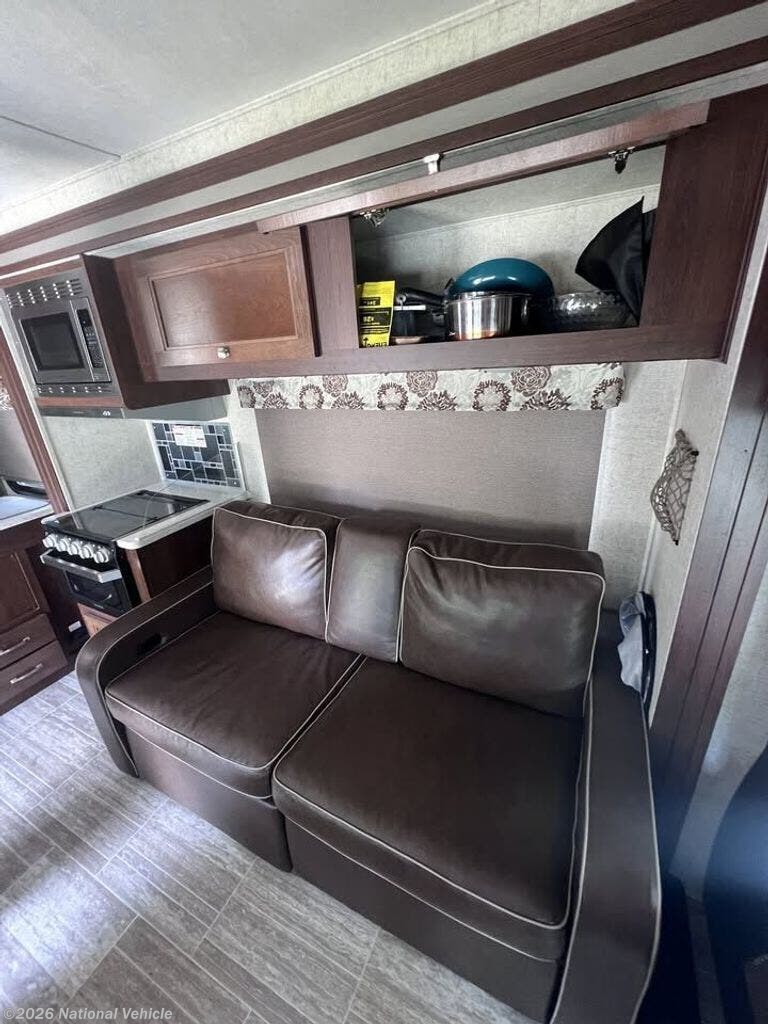 From the moment you enter, the separate rear master bedroom sets the tone for residential comfort, featuring a private queen bed and ample storage, creating a true retreat at the end of the day. Up front, the spacious queen bunk over the cab provides additional sleeping space without sacrificing living area, ideal for guests or kids.