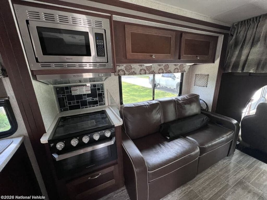 The living and dining spaces are engineered for flexibility and comfort. The sofa effortlessly converts into a bed, while the dinette folds down into another sleeping area, allowing this coach to comfortably sleep 6 people. Large windows and Forest River?s signature craftsmanship create an open, airy atmosphere throughout.