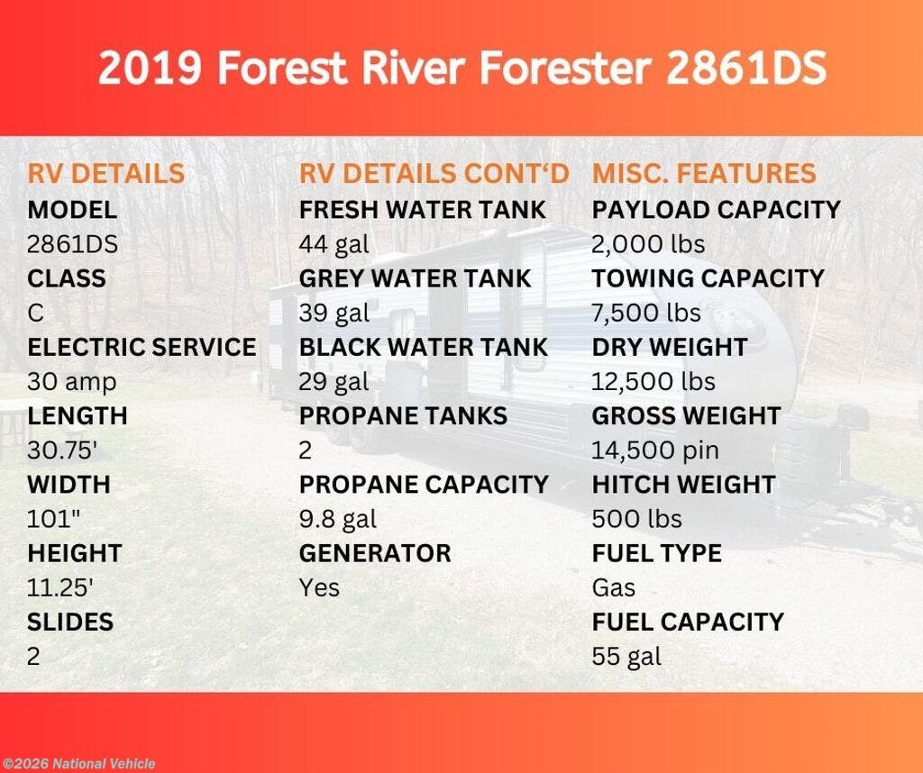 Request More Info on this 2019 Forest River Forester 2861DS Offered for sale by National Vehicle