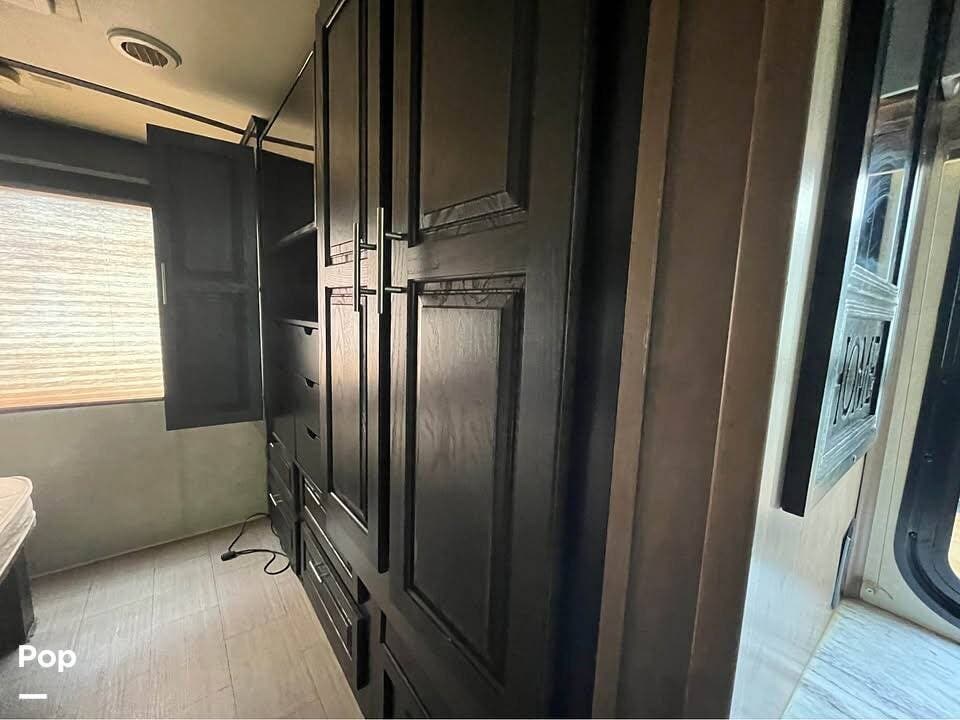 This FR3 has a king bed in the bedroom with TV, 2 hanging closets, and a large dresser.