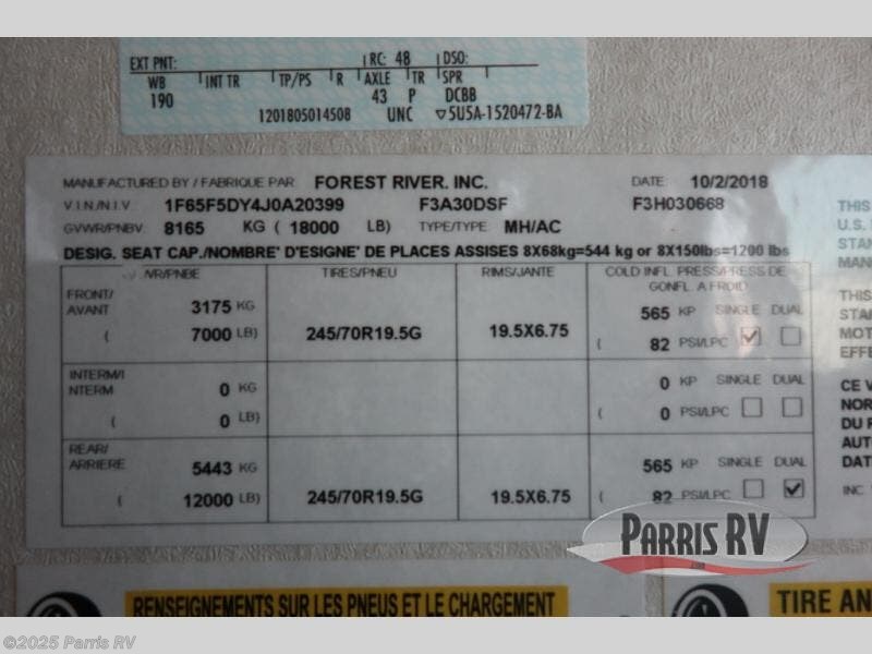 Request More Info on this 2019 Forest River FR3 30DS Offered for sale by Parris RV