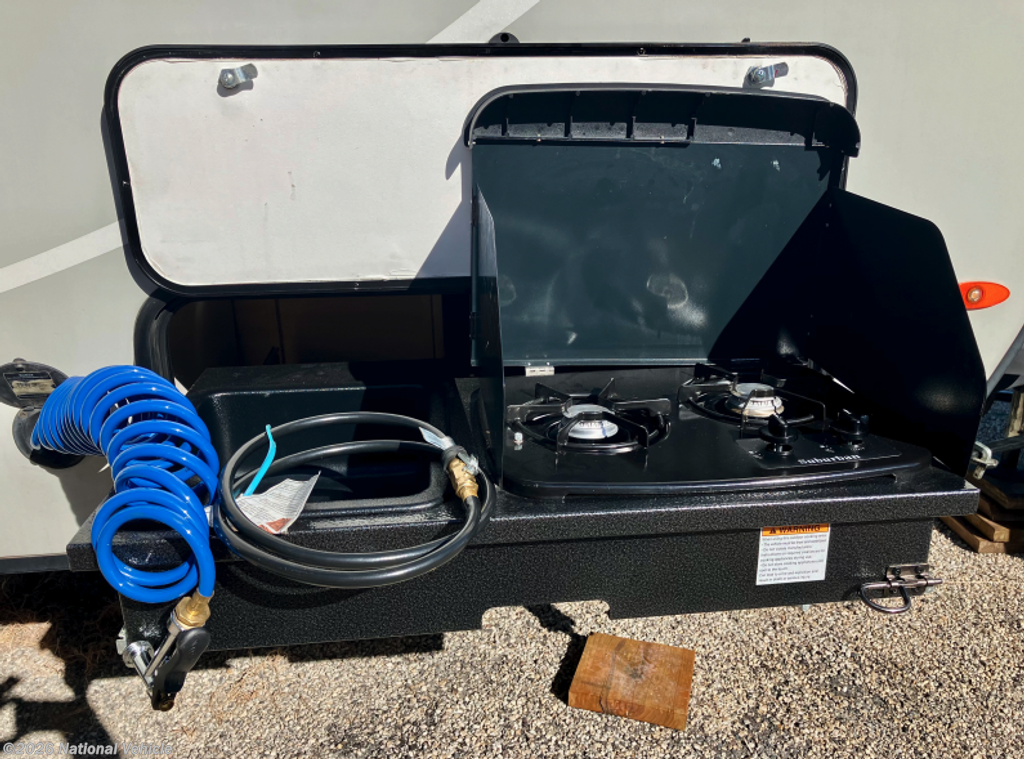 Enhanced Camping Experience: Comes with ample holding tanks (up to 36 gallons). Powered Thule awning, outdoor 2-burner cook stove and shower hookup.