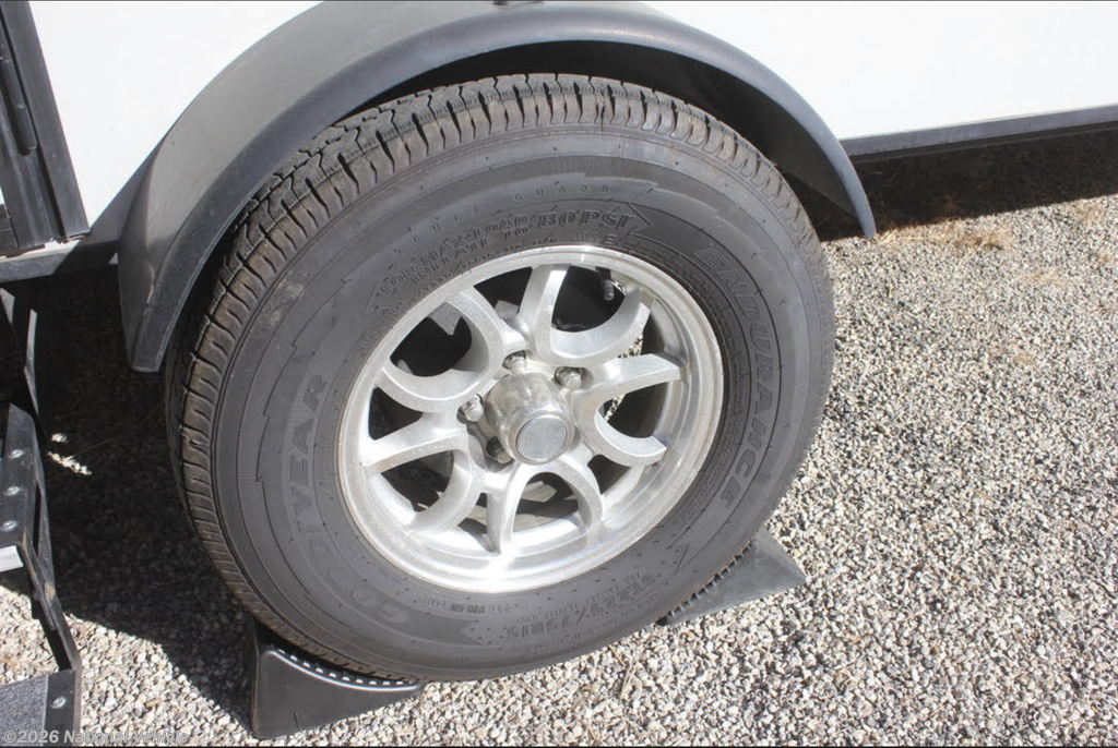Advanced Suspension & Tires: Torsion axle with independent suspension, 15? Goodyear Endurance radial tires rated at 80 PSI, custom E2 adjustable load-leveling and anti-sway hitch and self-adjusting electric brakes ensure a smooth and safe tow.