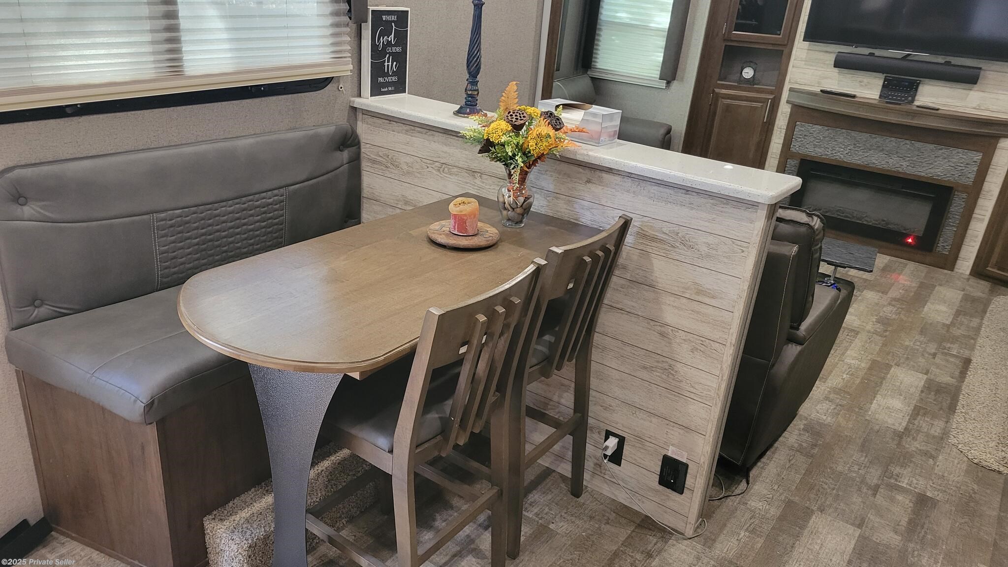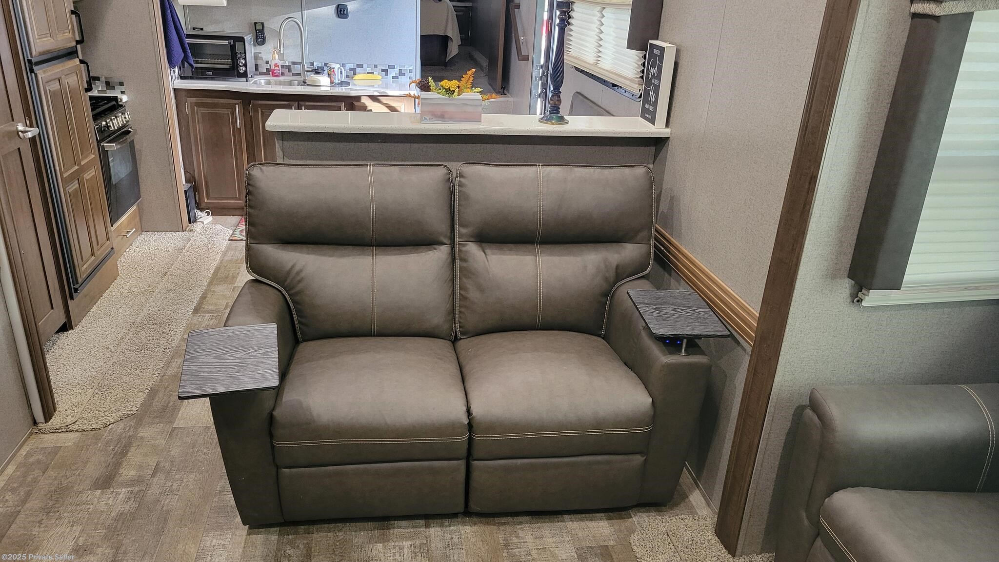 Super clean Rockwood Ultra Lite 36 foot with 4 slide outs. Livingroom has 2 loveseats that make into beds. Additional double recliner loveseat with heat and message. Large screen TV and electric fireplace. Dining has tall table with 2 chairs and a bench. Galley has 3 burner stove with oven, microwave, large pantry and double stainless sinks. Bedroom has queen bed with lots of storage and slide out closet. The private bathroom has stand-up shower with curved sliding door. Includes new fully insulated, wrap around skirting.