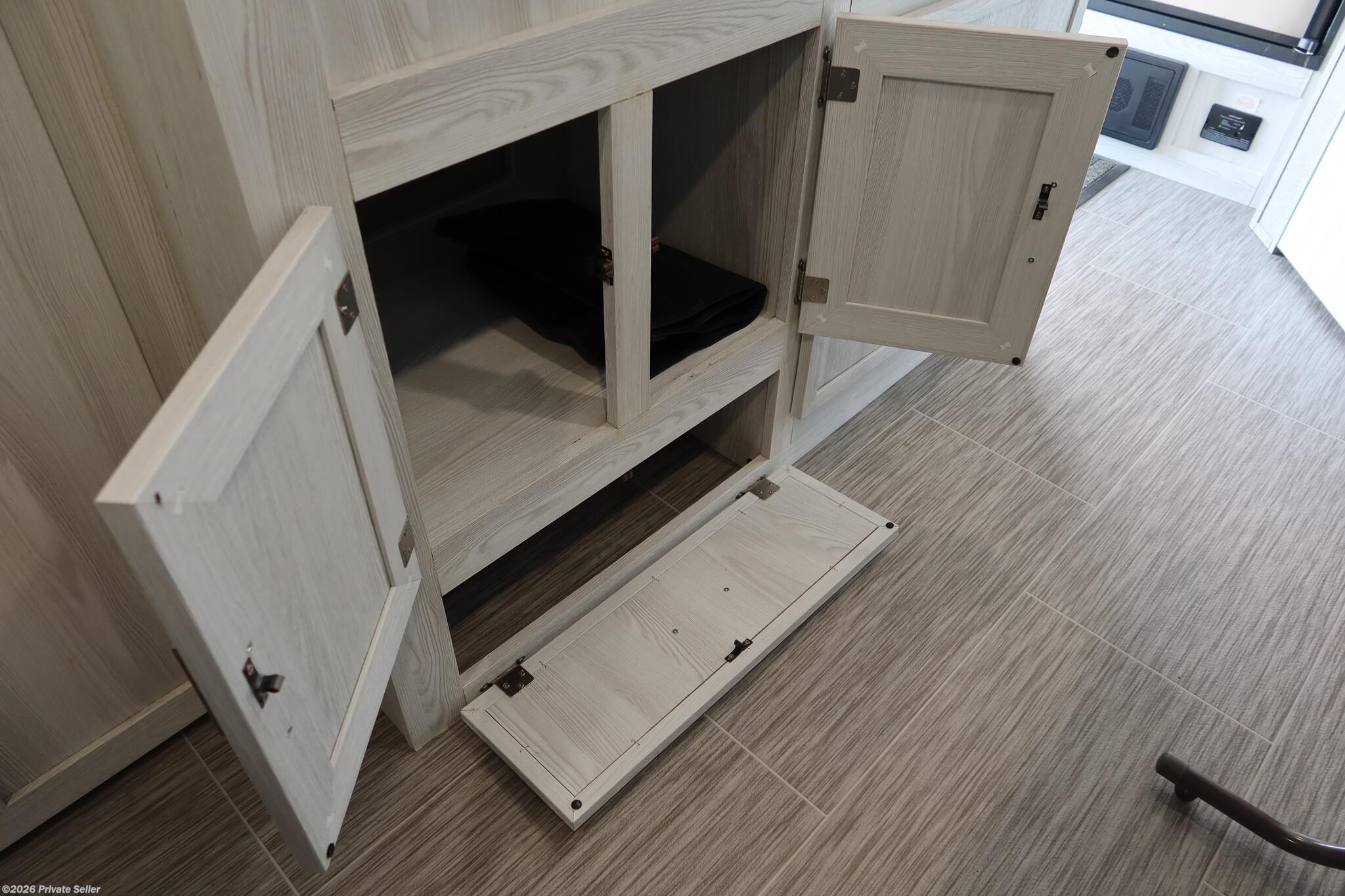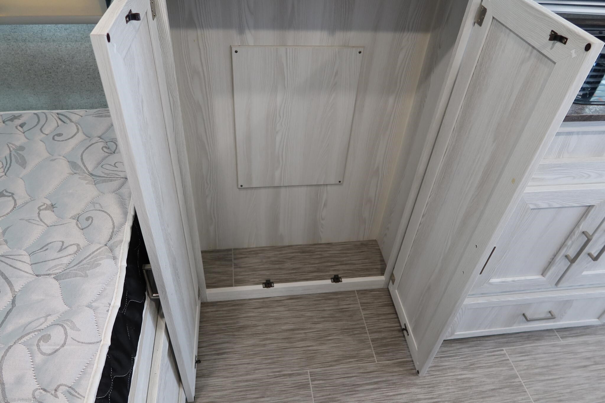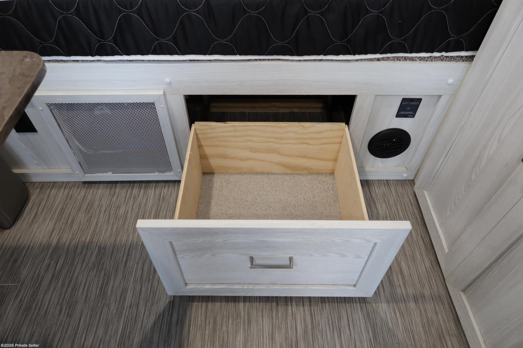 Dinette Bed, Heated Floor, Kitchen Sink, Medicine Cabinet, Non-Smoking Unit, Overhead Cabinetry, Queen Bed, Removable Table, Roof Vents, Self Contained, Shower, Toilet