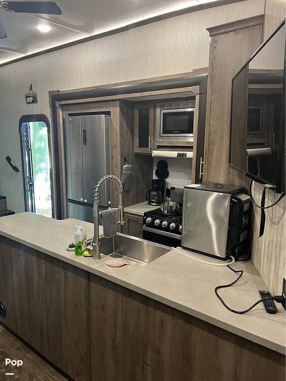 When you enter this RV, you will notice the neutral finishes, which allow you to decorate in any style and make it feel like home.