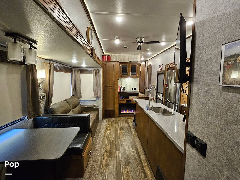 This 2019 Sabre by Forest River 36FRP is in good condition. It has a very open and comfortable interior and can sleep up to eight people.