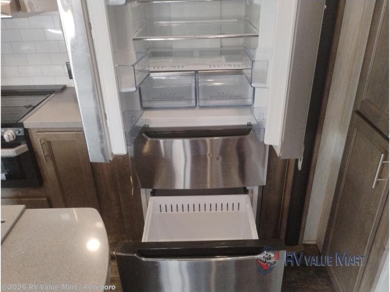 Each Sabre fifth wheel by Forest River offers luxurious living areas, residential kitchen amenities, four seasons of traveling, and lots of storage so you can stay awhile. From the Colossal Camper residential, french door refrigerator with dual freezer drawers, the seamless countertops and the ambient up lighting above the crown molding in the main living area for a stylish look, to the Cinemax seating with cup holders, heat, massage and back-lighting for the perfect movie night, to the industry leading, campsite-view, panoramic slide windows allowing you to enjoy the outdoors in comfort, you will love any model you choose.